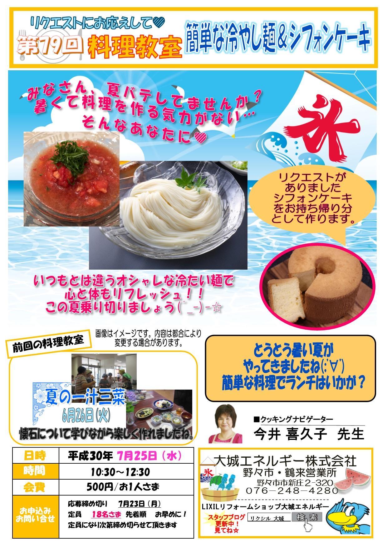 今回のメニューは『簡単な冷やし麺&シフォンケーキ』です。
