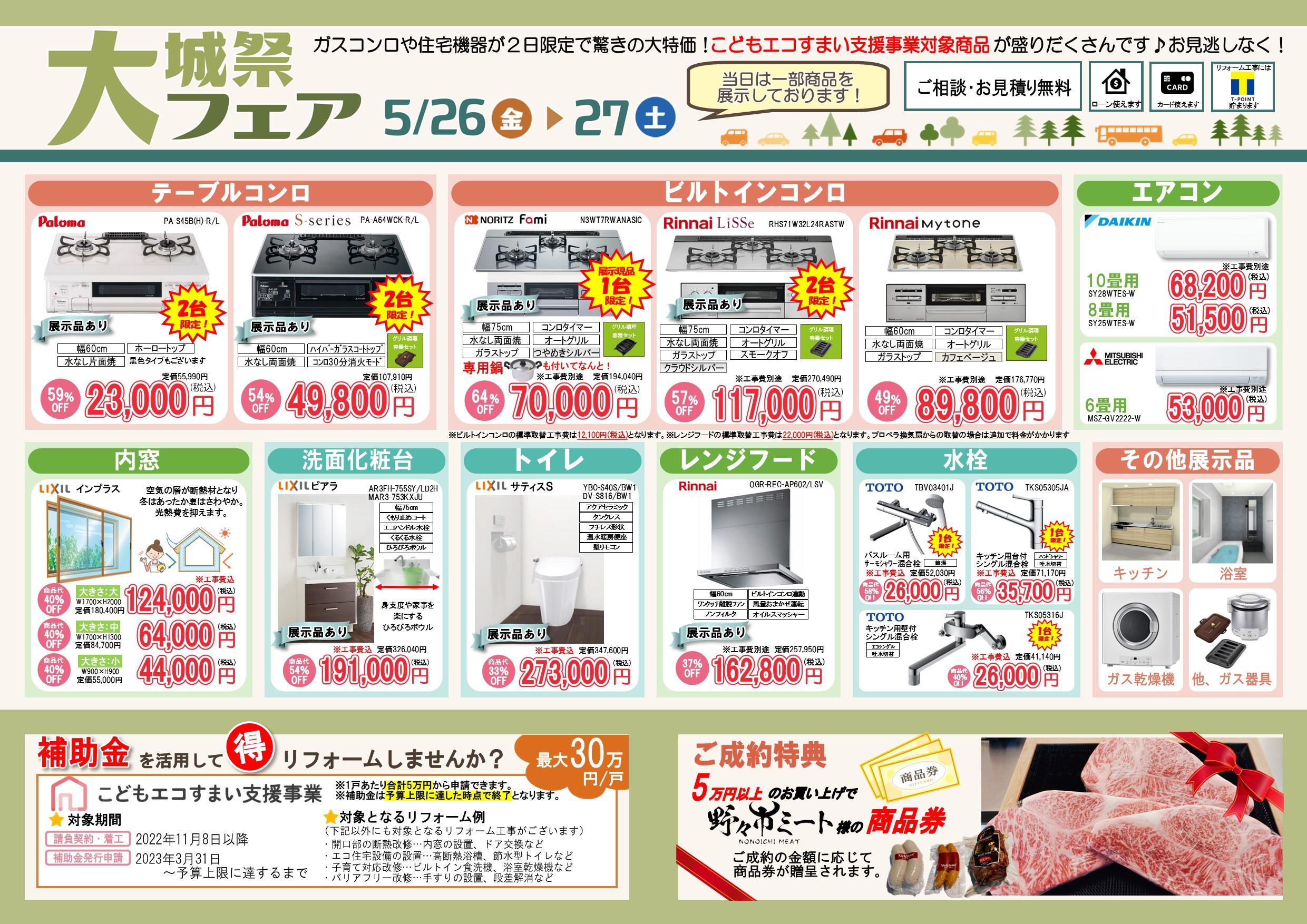 ガス機器や水回りの機器などが大特価となります!