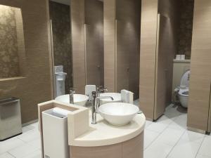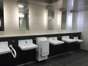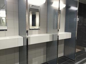 手洗器1つ1つに大きなミラーがあって◎(^^)b
