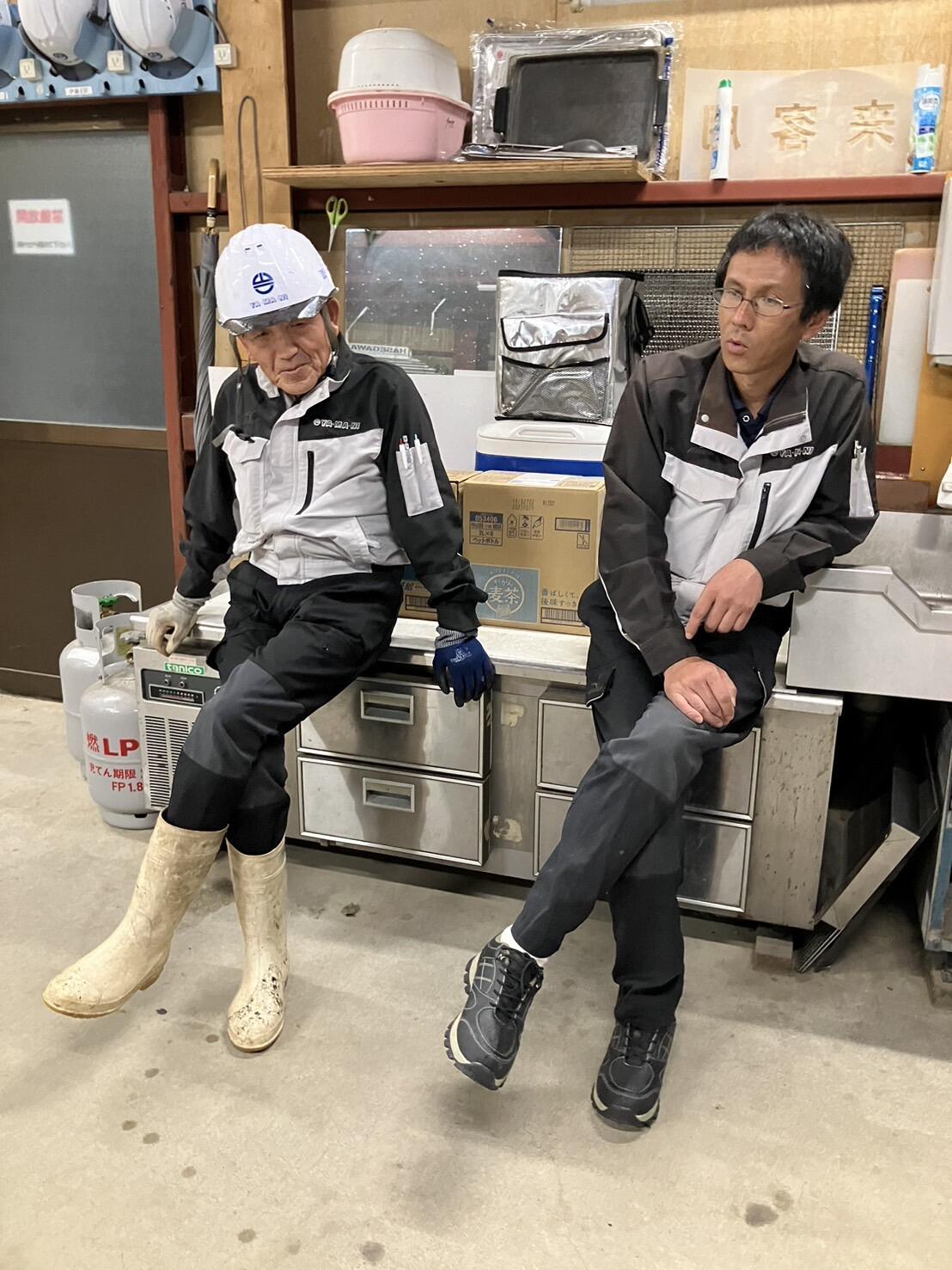 外の工事を予定していた社員が、倉庫で雨宿りをしていました。