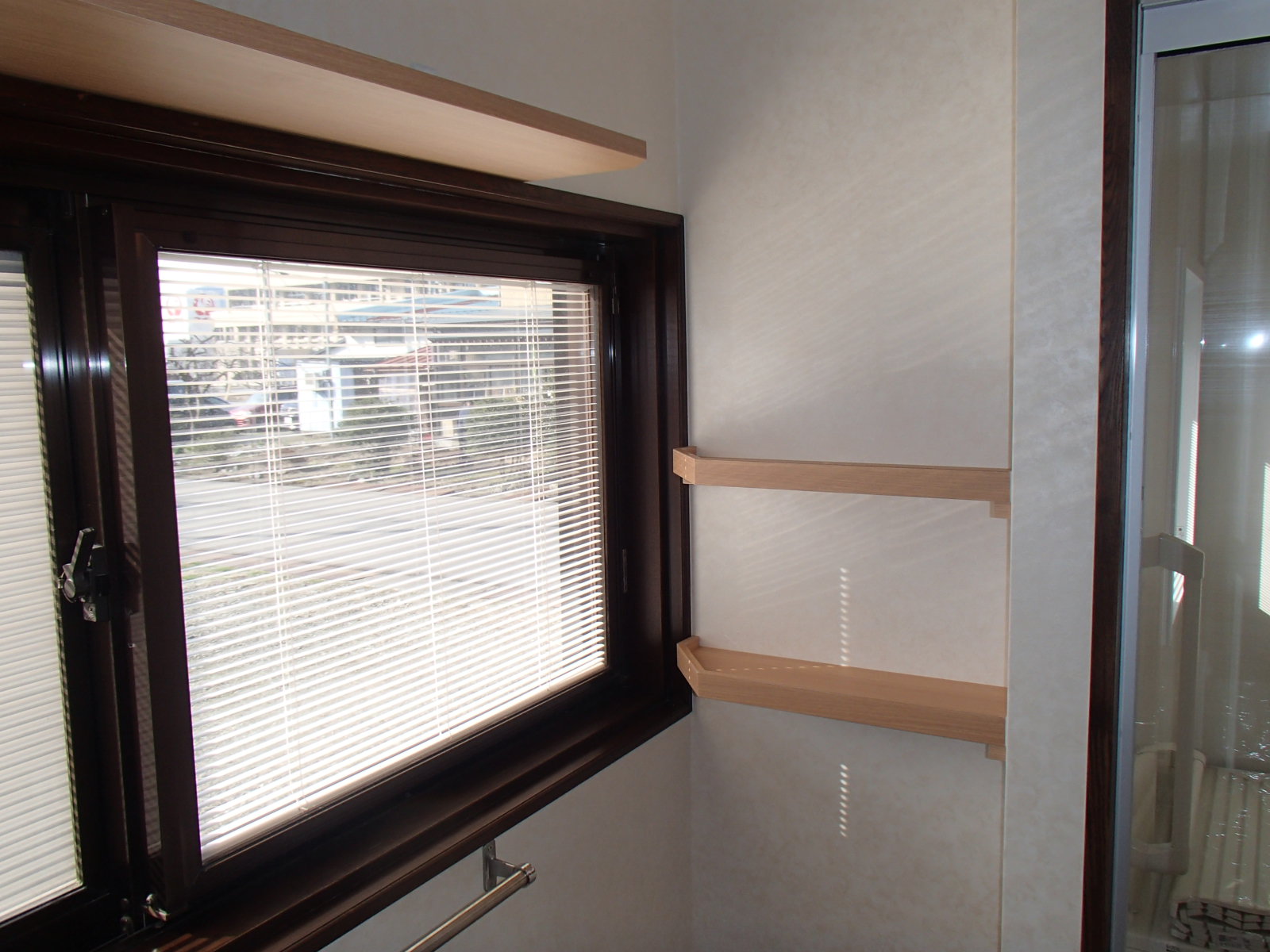 窓側に棚を取付ました。 光が入るようにと、窓を開け閉めしやすいように設計しました。
