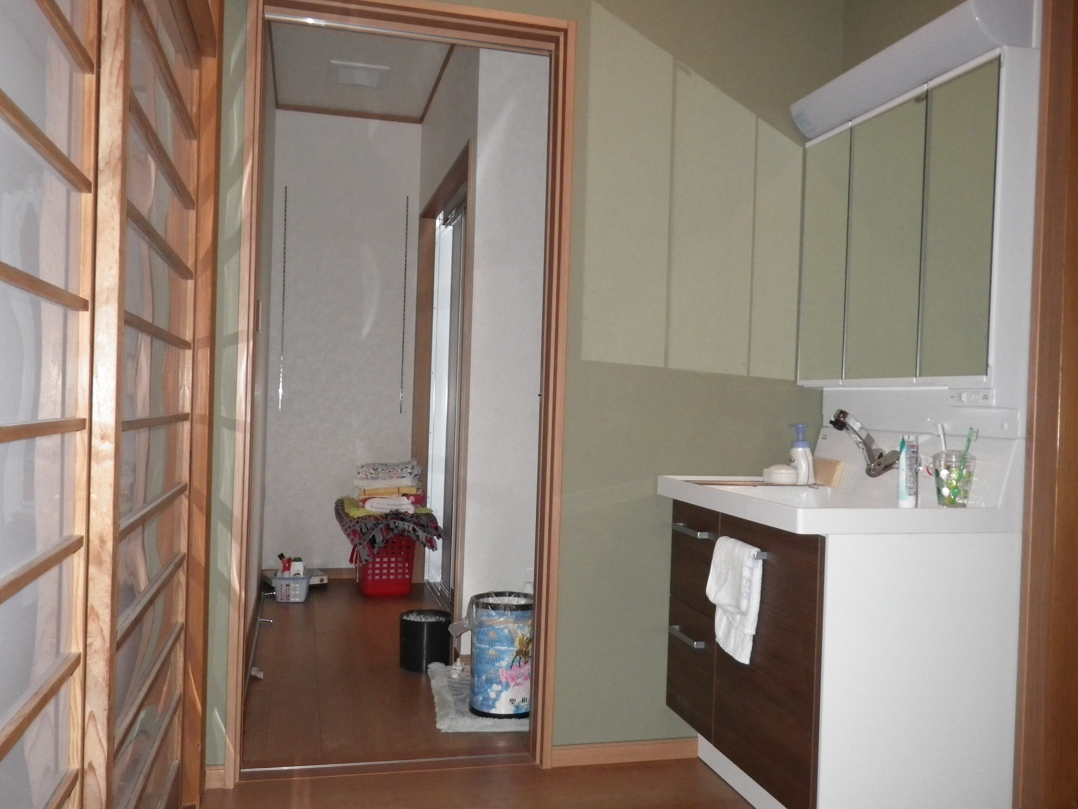 以前は洗面室と脱衣場が区切られていましたが、一つにすることにより、着替える場所も広くなり使いよくなりました。