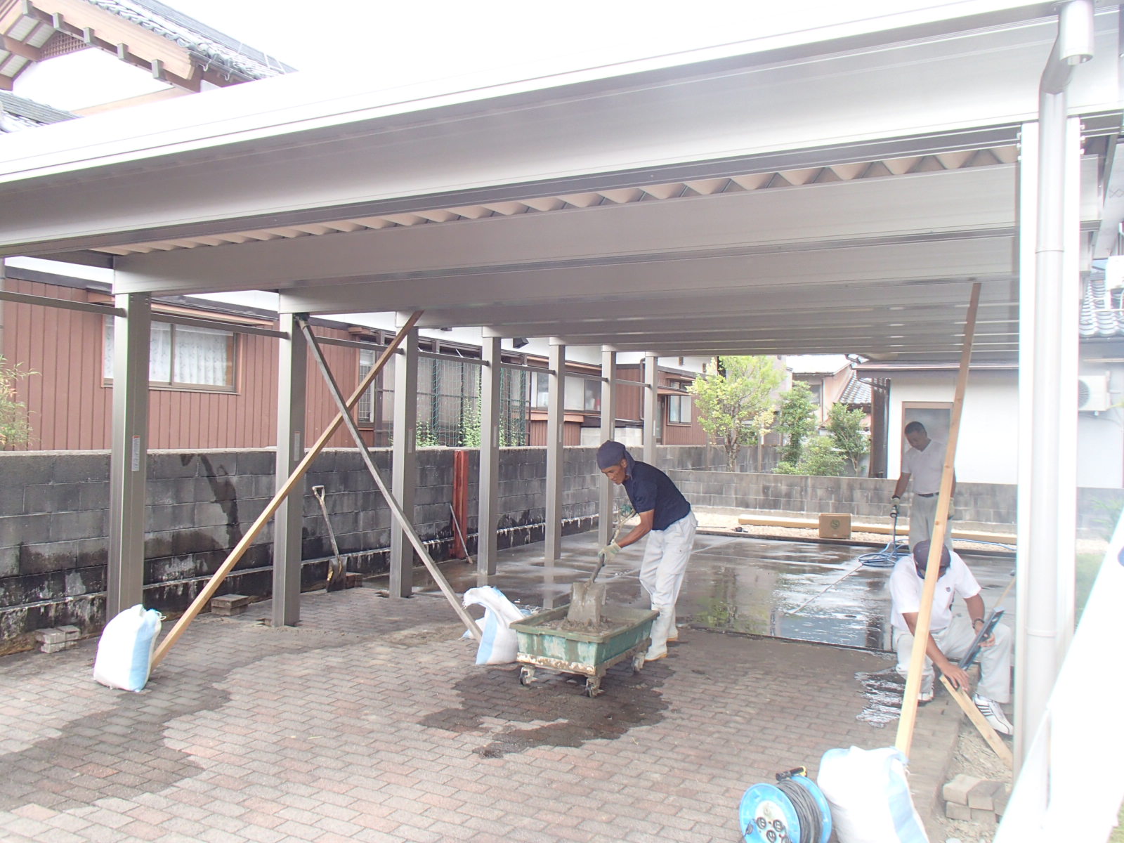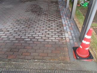インターロッキングを使用。 透水性があり環境にやさしい素材の様です。 歩道や公共施設で見かけます。