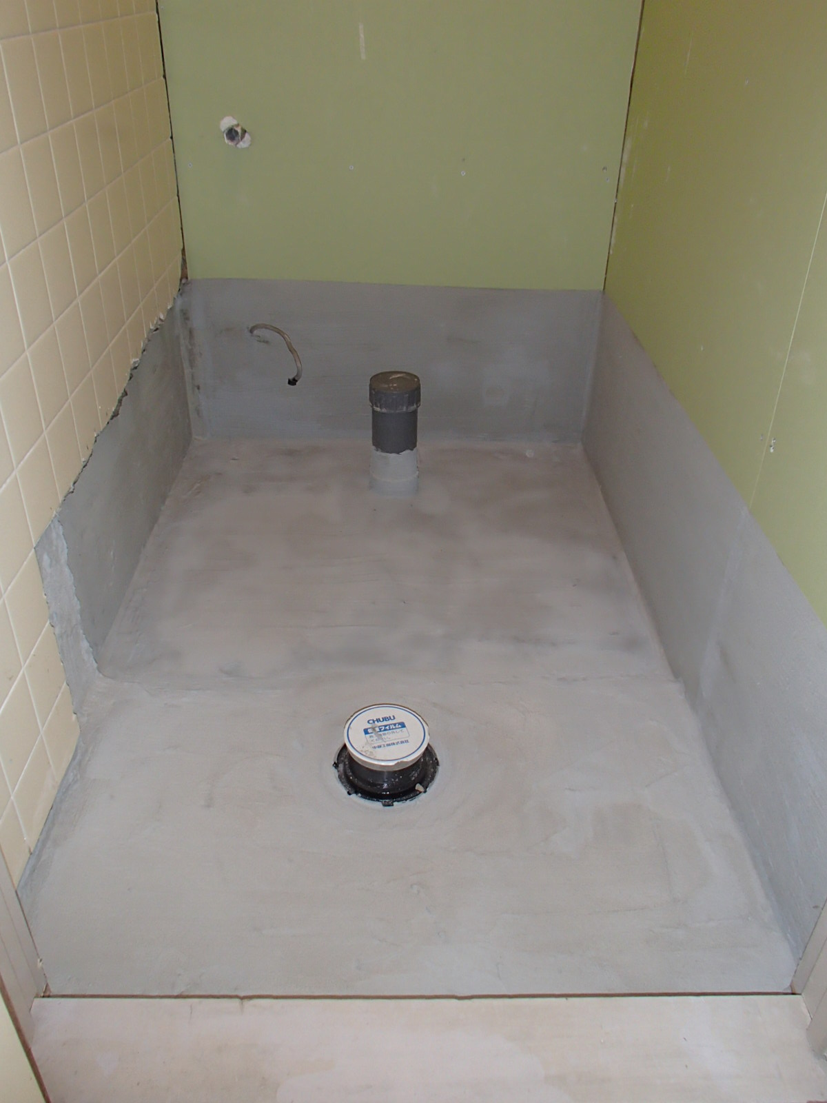 工事をさせて頂いたトイレは2階だったので1階に水漏れしないよう防水工事をしました。