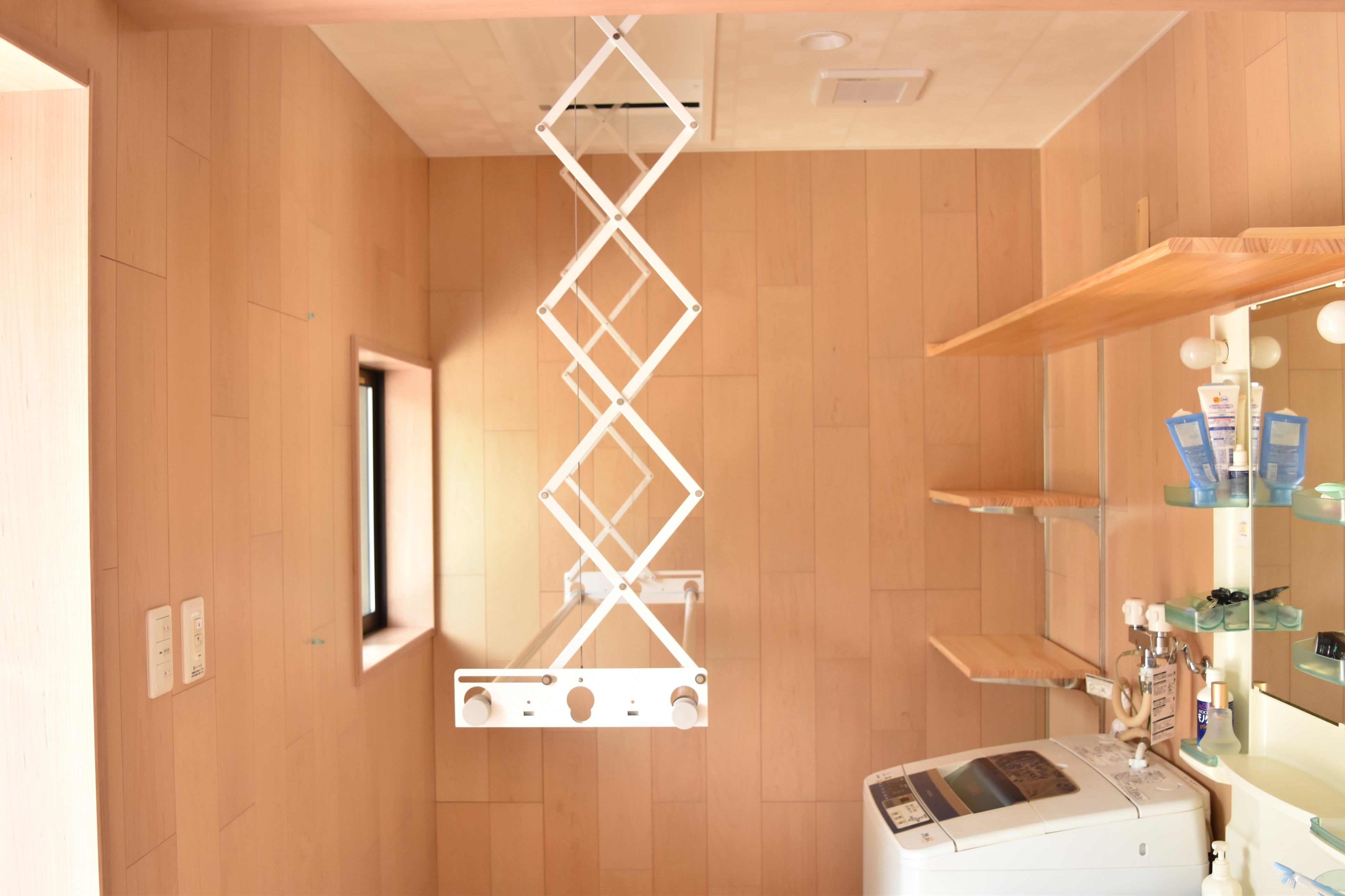 スイッチひとつで竿を昇降。竿2本でたっぷりの洗濯物が干せます。