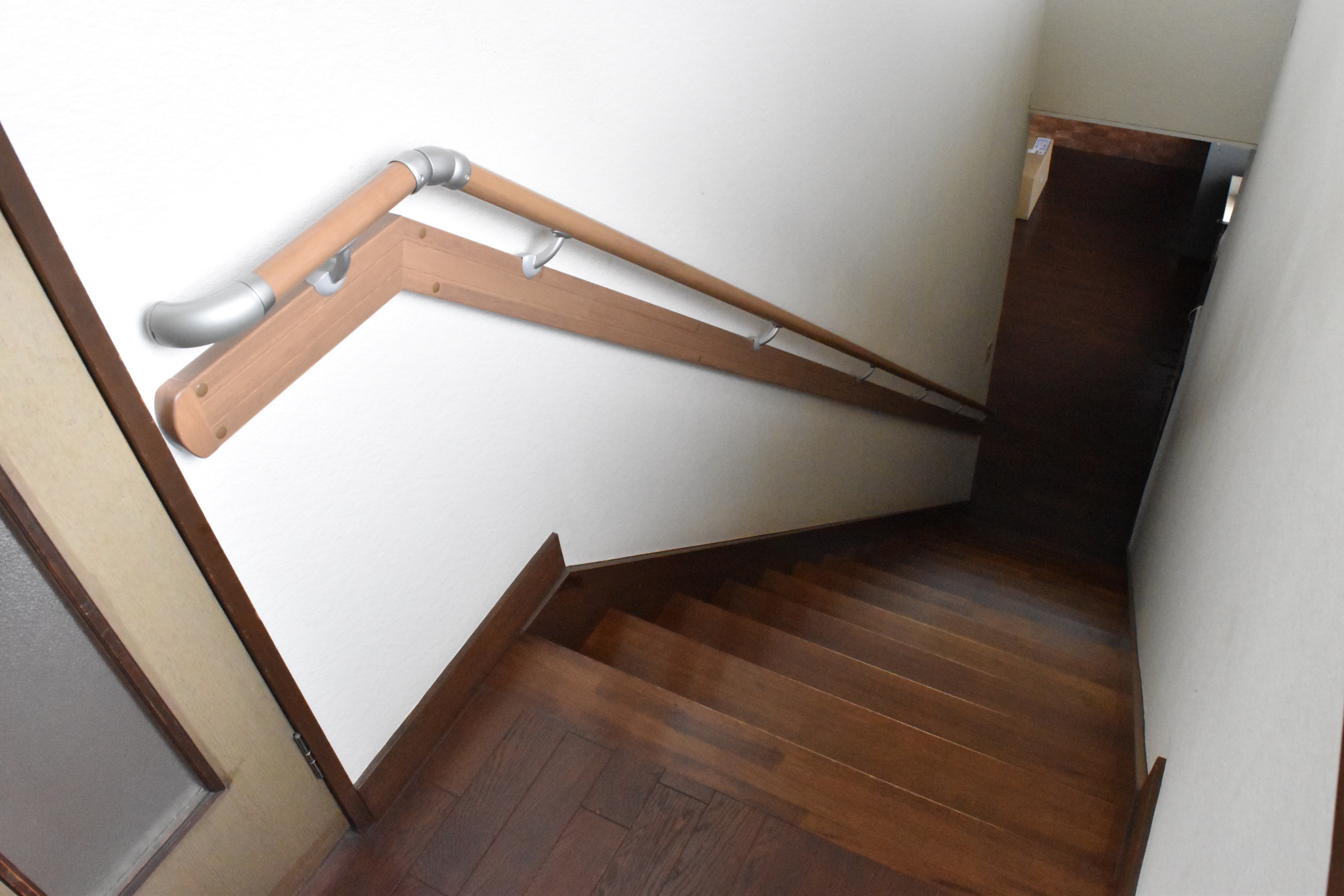事務所が2階にあり階段の上り下りが多いので手摺取付け依頼されました。施工費~10万円