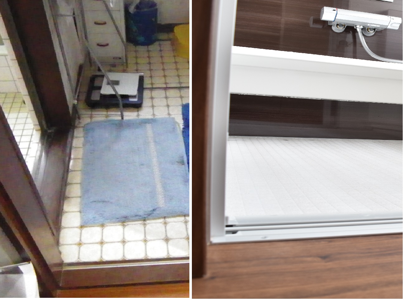 脱衣場と浴室の段差がなくなり、つまづきにくくなっていいですね)^o^(