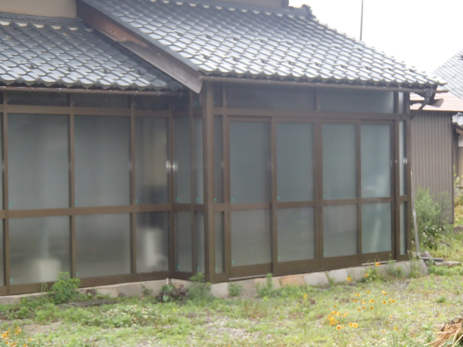 完成 ガラスは強化ガラスを使用していますので雪が積もっても安心です。
