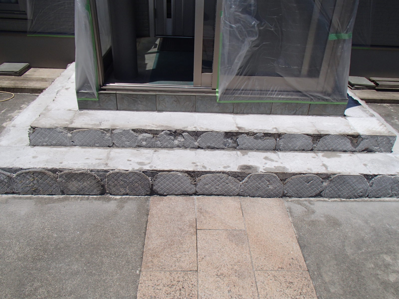 一番上の段は、タイルが割れていなかったのと剥がすと上の部分まで割れてしまう恐れもあったので、剥がさずにそのままにして、2段目・3段目の修繕を行いました。