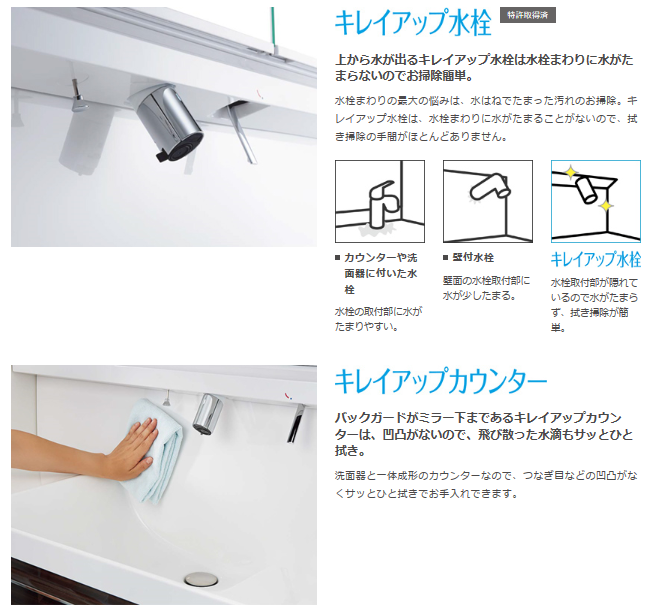 上に水栓が付いているので、水が周りにたまらずお手入れがラクです!(^^)!