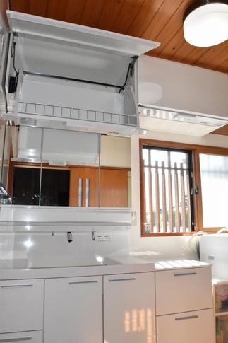 アッパーキャビネットはダウン機能付きで、降ろせるので便利です。