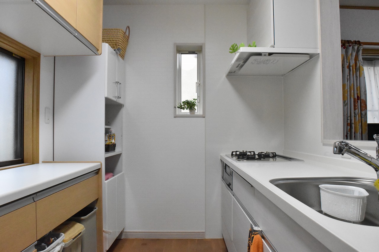 引き出し収納は奥の物が取り出しやすいです。 外の光が入り込むように小窓を付けました。