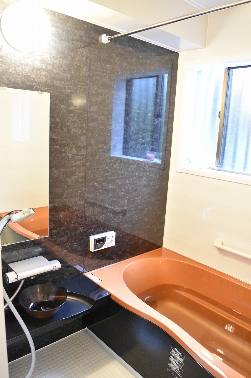 ゴールドオレンジの浴槽はとても綺麗な色です。