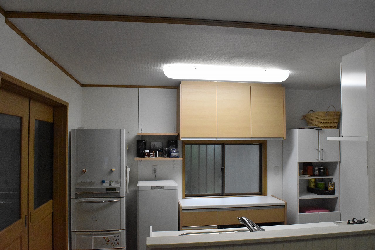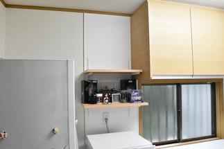 洗濯機置場も移設し、調節可能な棚を付けました。