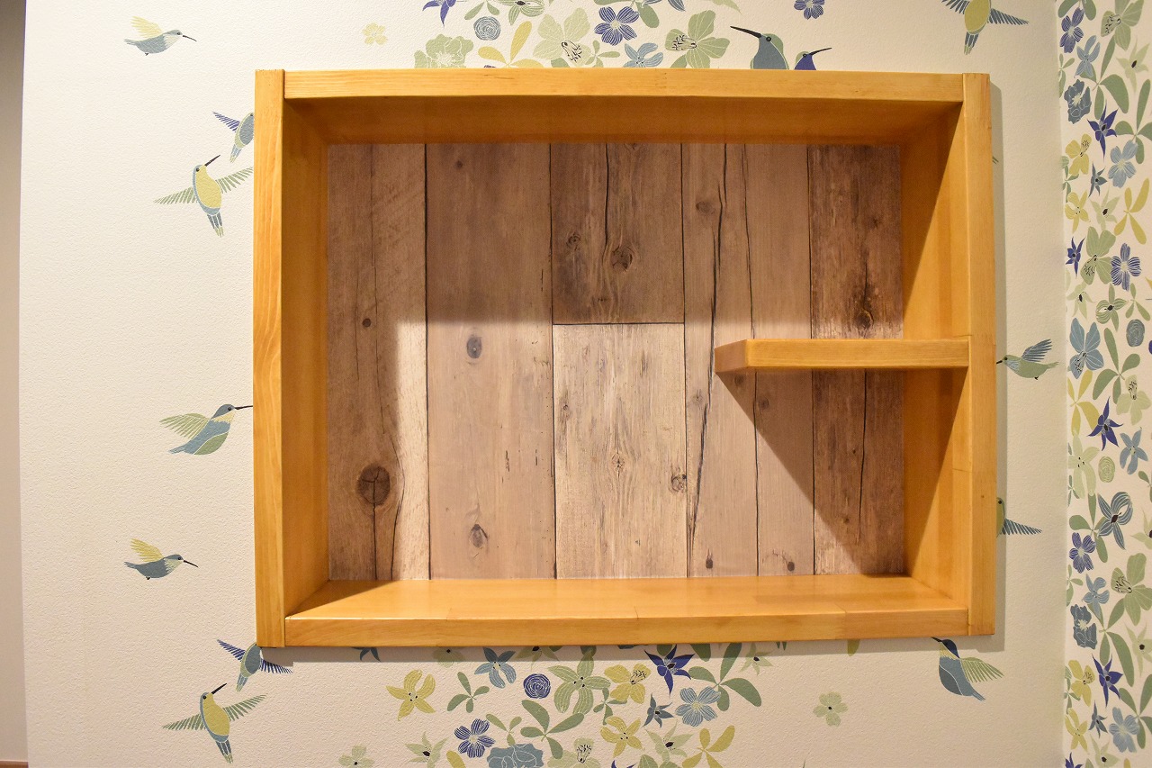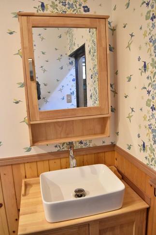 洗面台もカントリー風で壁にもあって、かわいく仕上がりました。