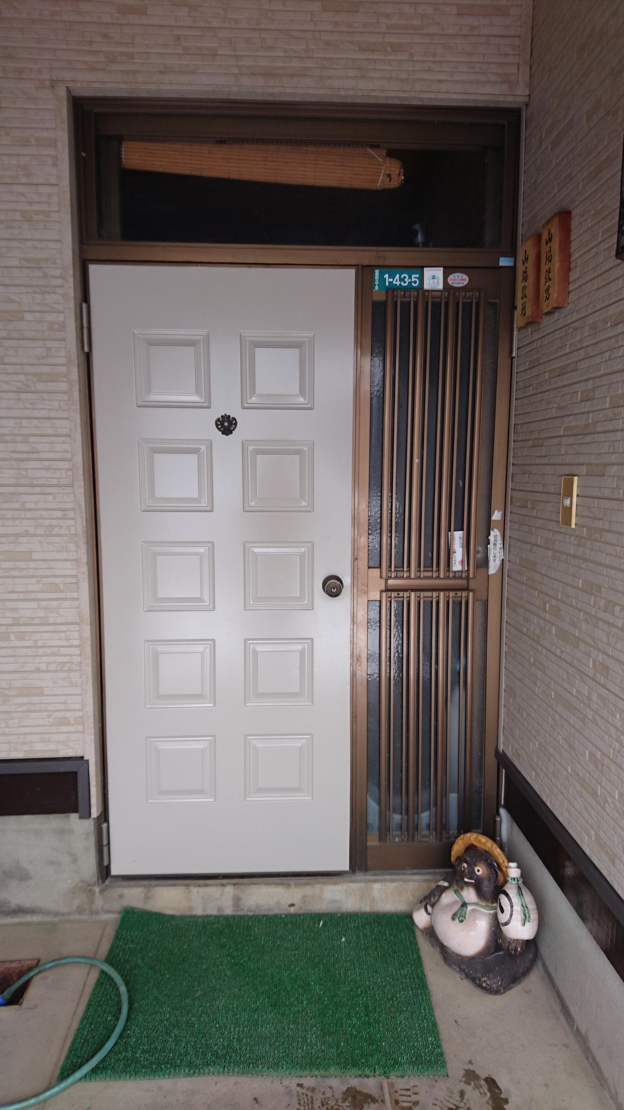 親子ドアから片引戸へ取替えました。風の強い日も楽に開く事が出来ます。
