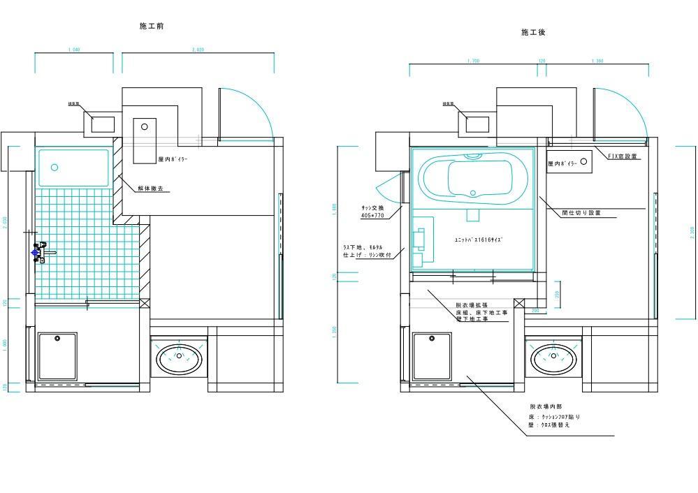 浴室の形を整え、以前より少しですが、脱衣室も大きく取りました。