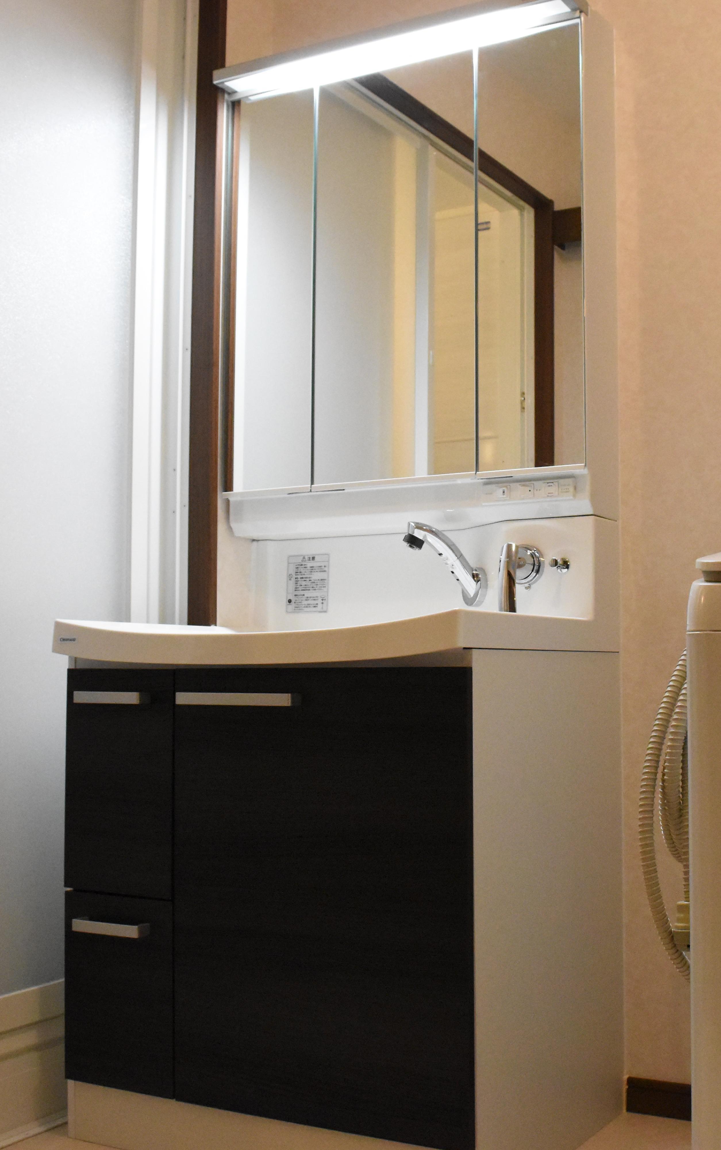 コンパクトでスマートなLED照明の付いた3面鏡です。ミラー裏にはたっぷりの収納スペースがあるので、小物をすっきりと整理することが出来ます!