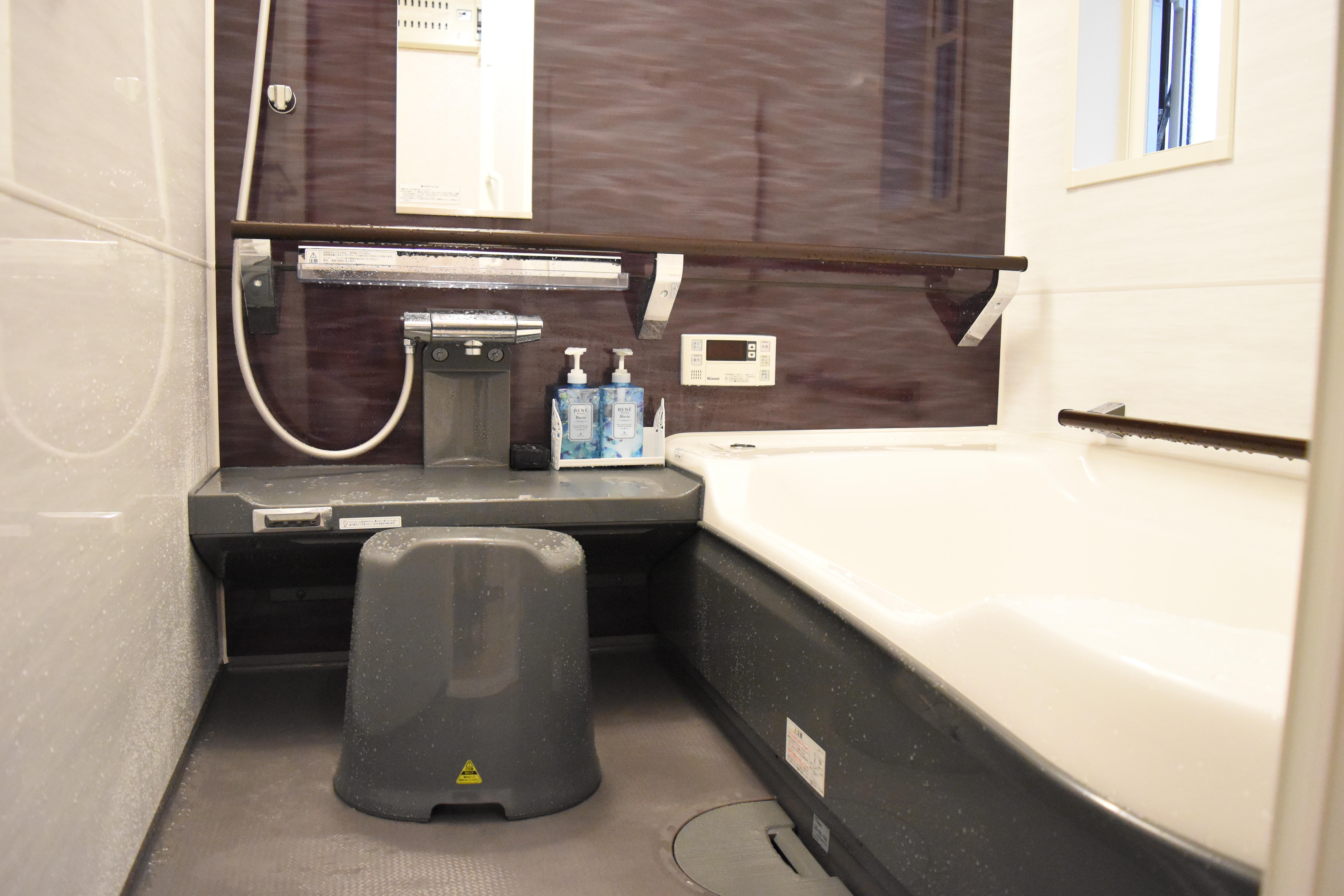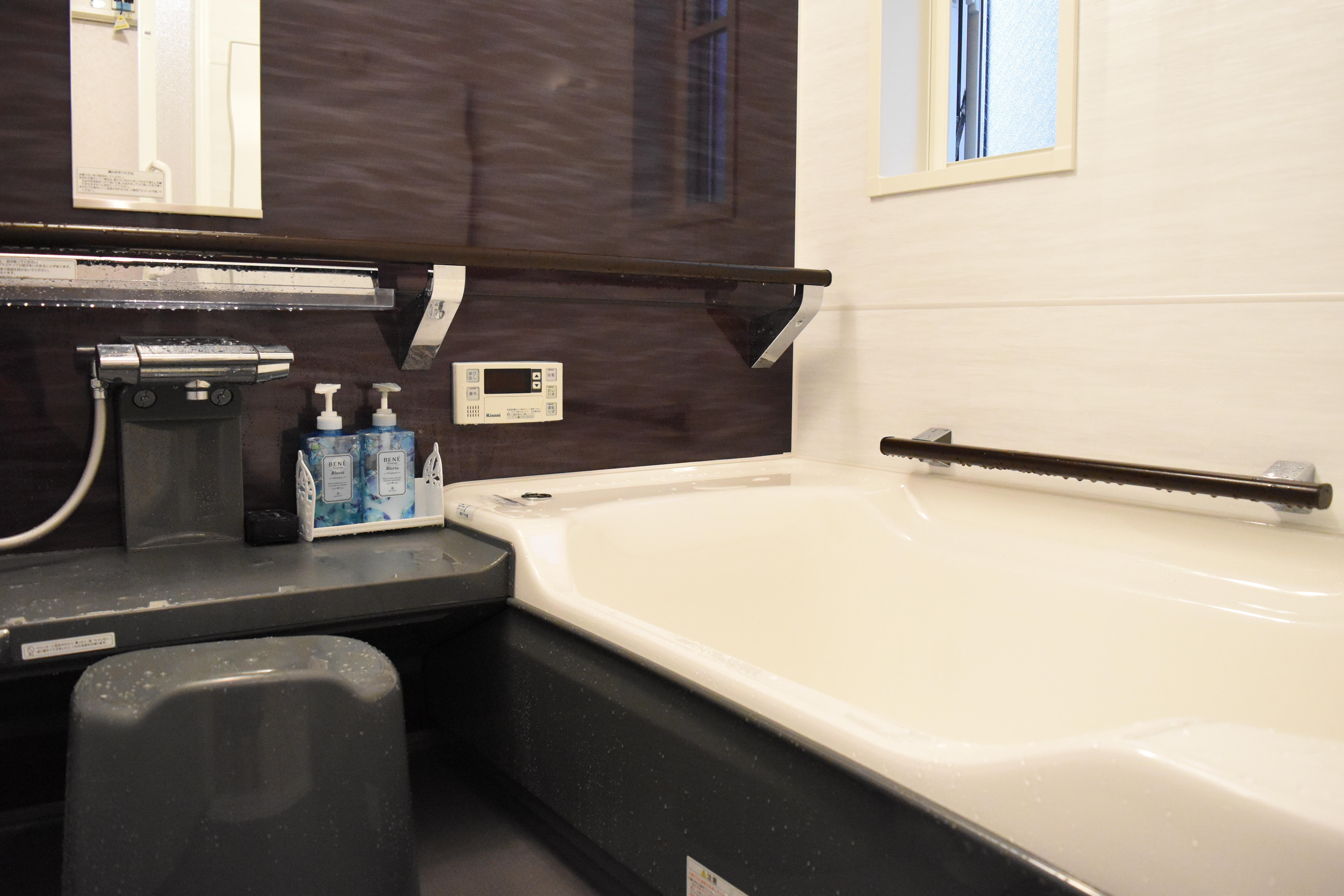 洗い場での立ち座りや浴槽の出入りに大活躍のサポートバーが付いています。また、浴槽のマタギ部が低くなっているのも、スムーズな出入りをサポートしてくれます!