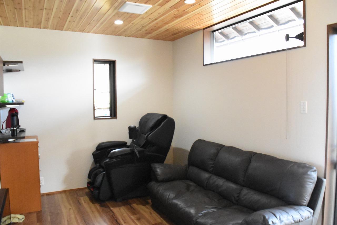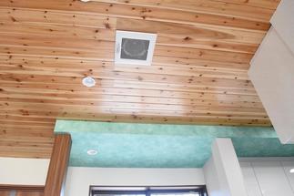 ライフスタイルコンパスを参考に、ご主人様と奥様のライフプランに合わせて設計しました。天井を杉板の羽目板にしたり、明かり窓を多めにとったりすることで、明るく温かい空間造りを行いました。