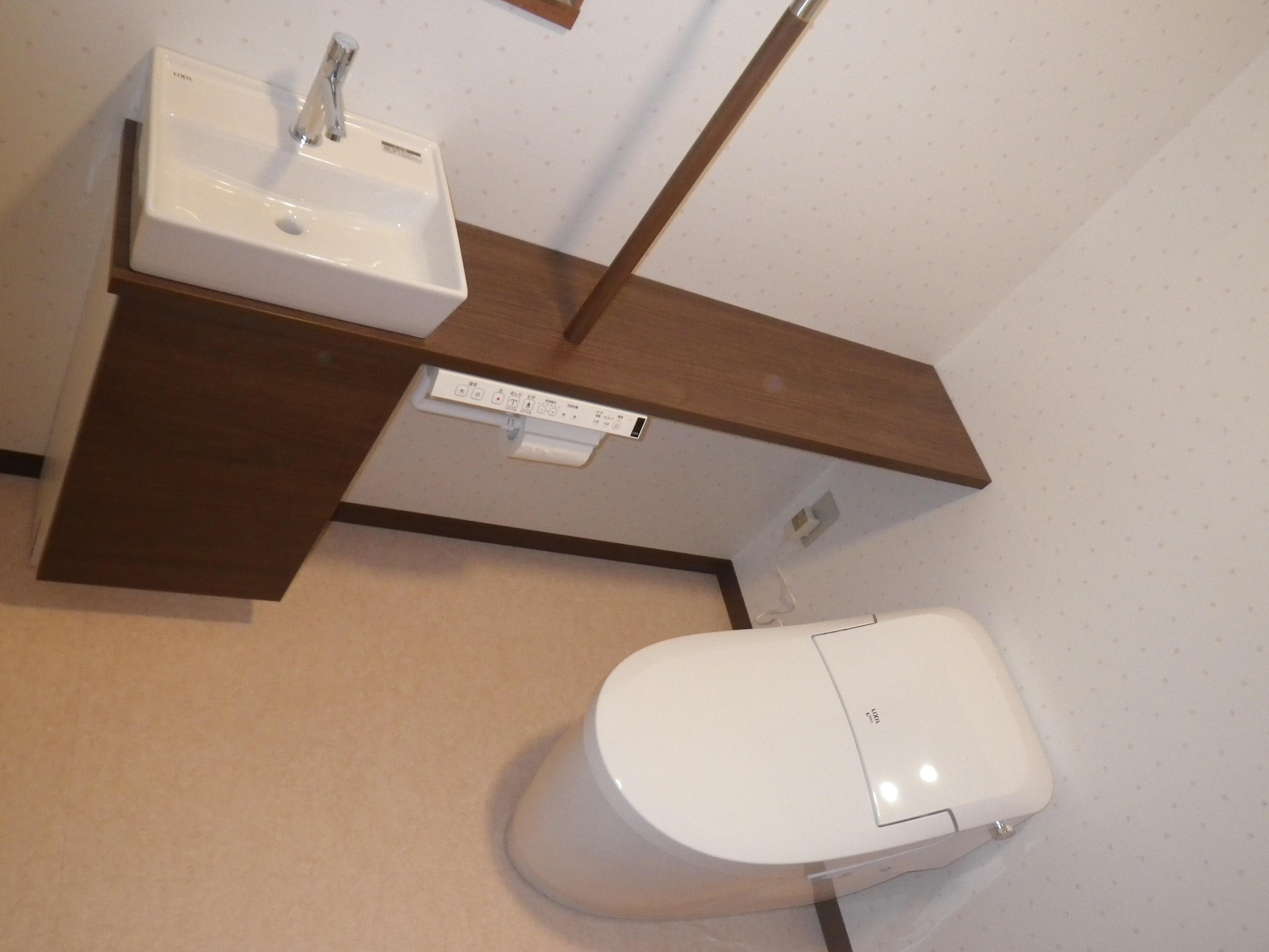キャパシア(トイレ手洗い器)を設置することで掃除用具などを収納できるようになり、トイレ空間がすっきりします。女性におすすめです。
