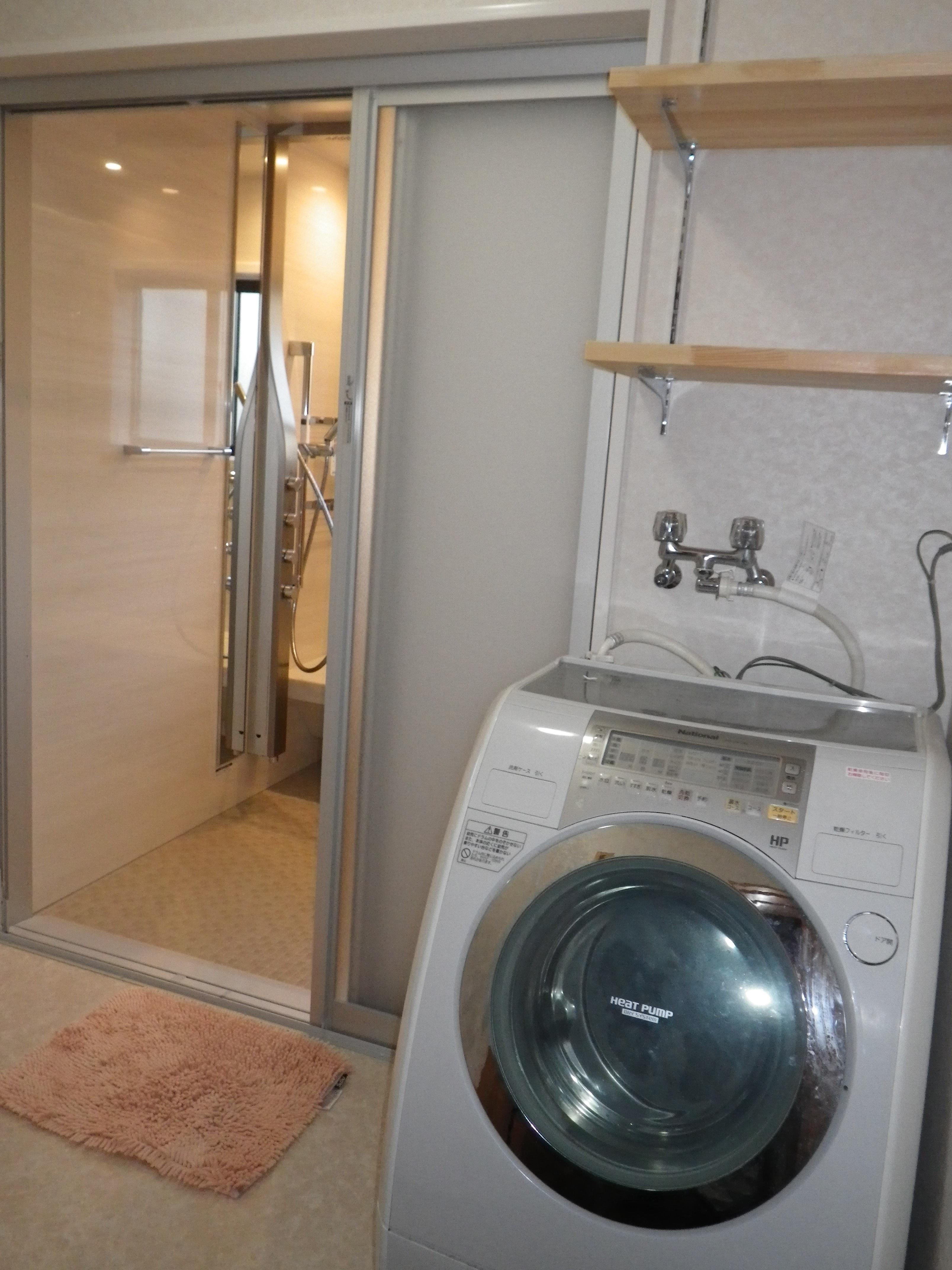 収納棚を撤去して、洗濯機の上に棚を取り付けました。