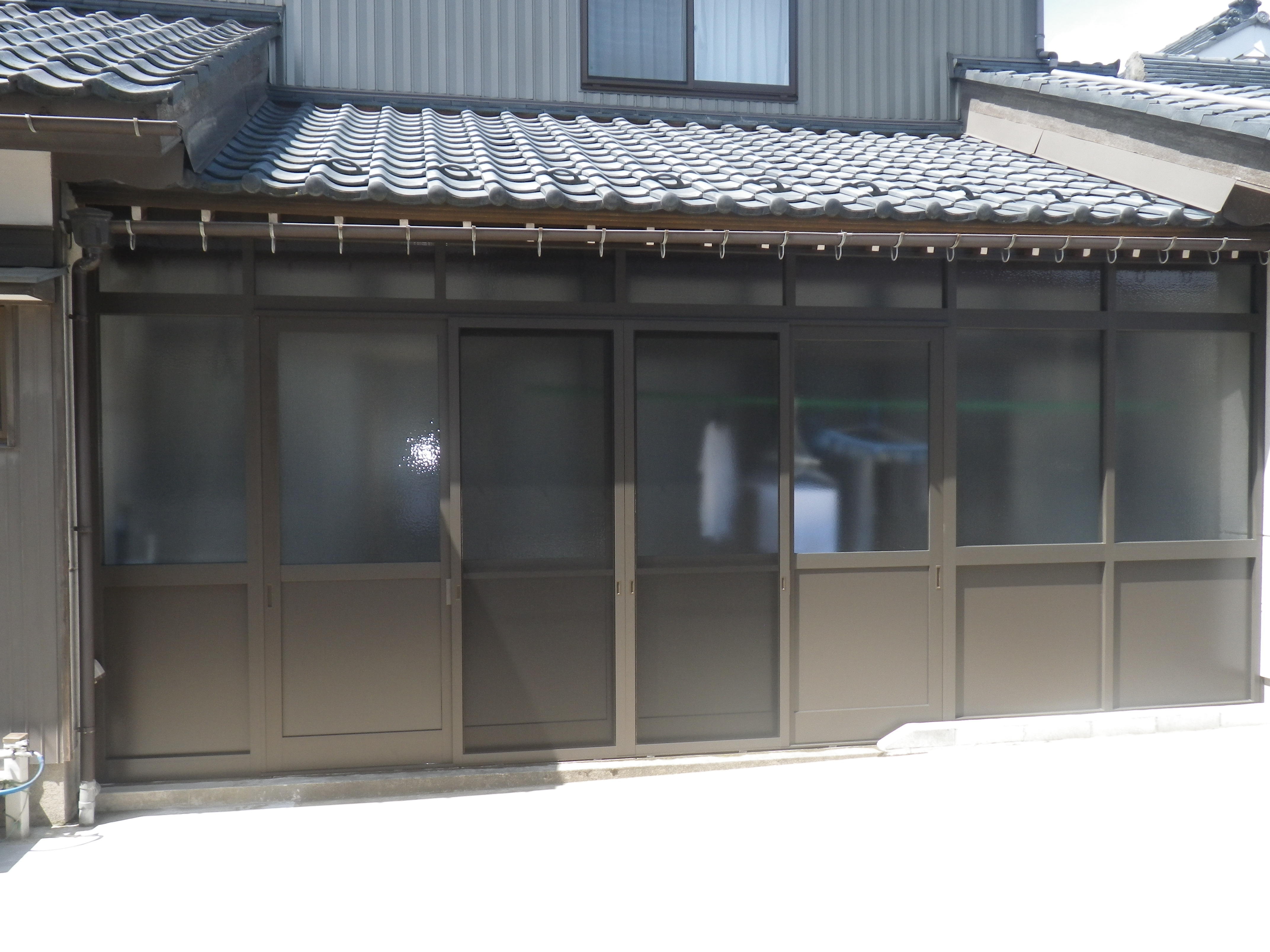 古くなったことで建具がスムーズに開閉しづらくなり、しばらく我慢していたそうです。思い切ってアルミの風除室にしようということで、今回のご依頼をいただきました。 施工費:50万~70万円