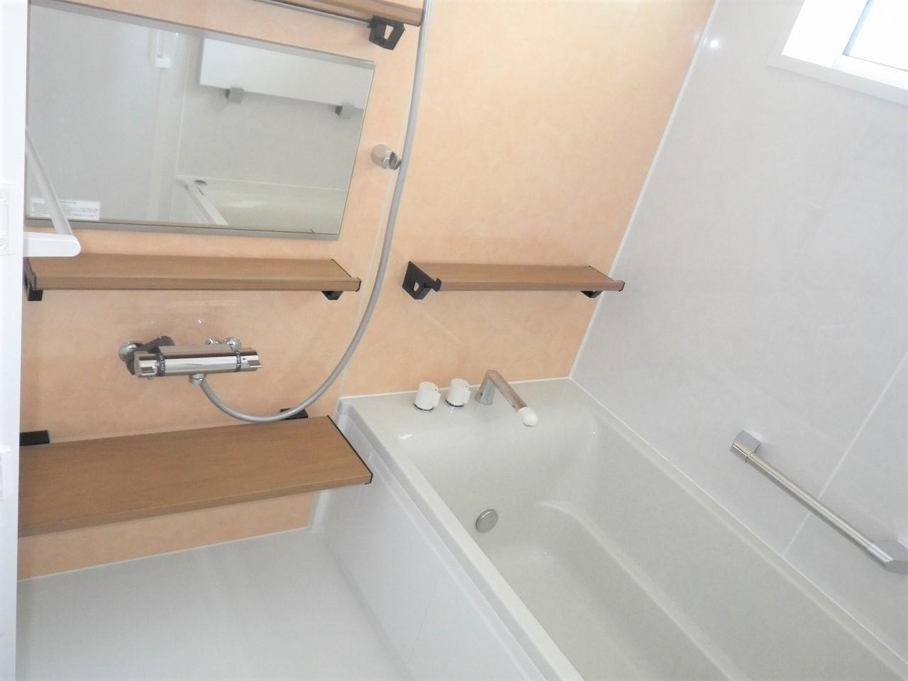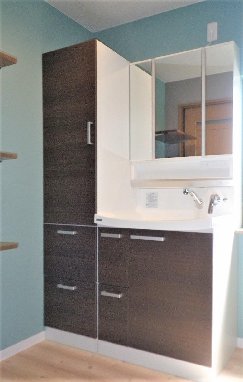 以前のお風呂の色がブラック系で高級感はありましたが、暗く寒い感じでした。今回は断熱性の高いユニットバスを選び、更に壁アクセントカラーを優しい暖色にしたので、見た目にも温かい浴室に仕上がりました。洗面化粧室もともにリフォームさせて頂きました。 施工費:170万~230万円