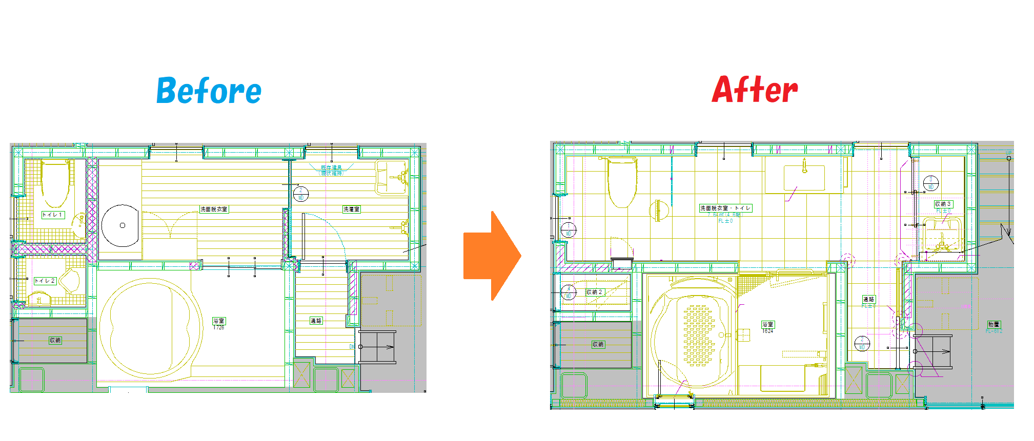 トイレ・浴室・洗面脱衣場を一体化して、“スッキリとしてホテルのような空間づくり”をご要望されていらっしゃいました。こだわりの住設機器で、広々としたおしゃれな印象に仕上がりました。 施工費:750万~850万円