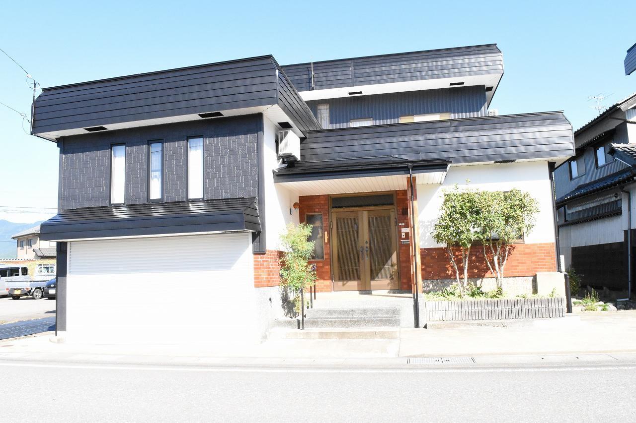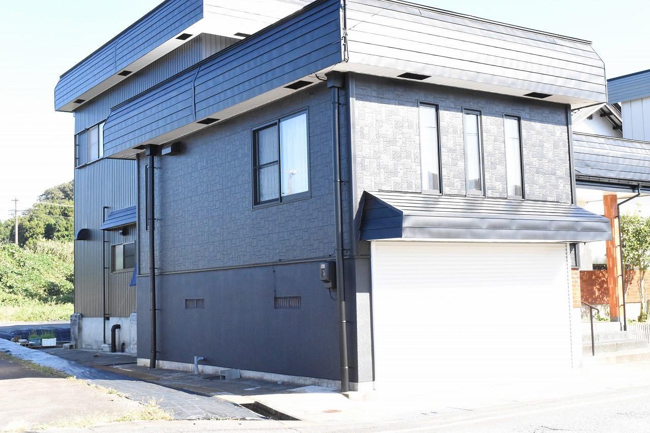 近隣の方にご迷惑が掛からないように養生シートを張って、施工させていただきました。お家の印象がガラッと変わり、シックでかっこいい外観になりました。ありがとうございました。