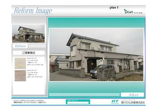 春の感謝祭に来場いただいた際にご相談くださいました。既存の外壁に不安を感じているので強度を高めて、見た目も良くしたいとご希望されていました。完成のイメージがしやすいように外壁張替後のイメージ画像をもとに打合せいたしました。 施工費:360万~430万円