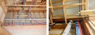 2階に給排水管をつなげるということで、排水管は水を流しても音がしにくいように防音排水管「音ナイン」を使用しました。