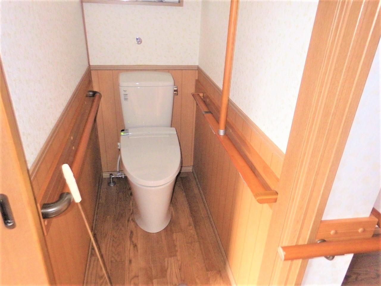 右半身が不自由になったおばあちゃんが過ごしやすくなるように、トイレ改修と寝室の内装工事のご依頼いただきました。介護保険を活用して、手すりを設置しました。 施工費:80万~100万円 お引渡し:2019年11月