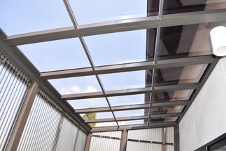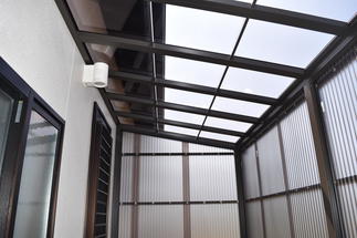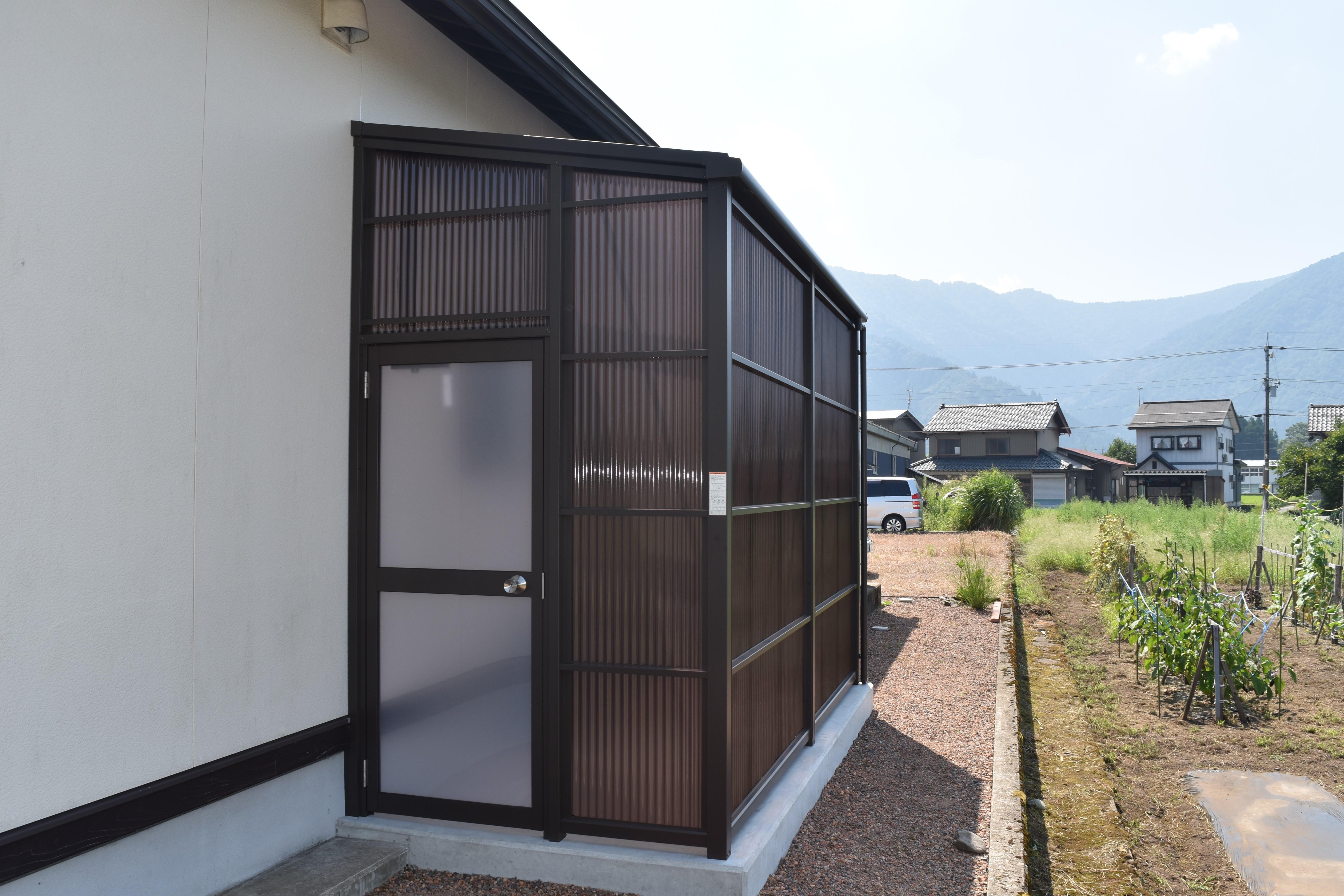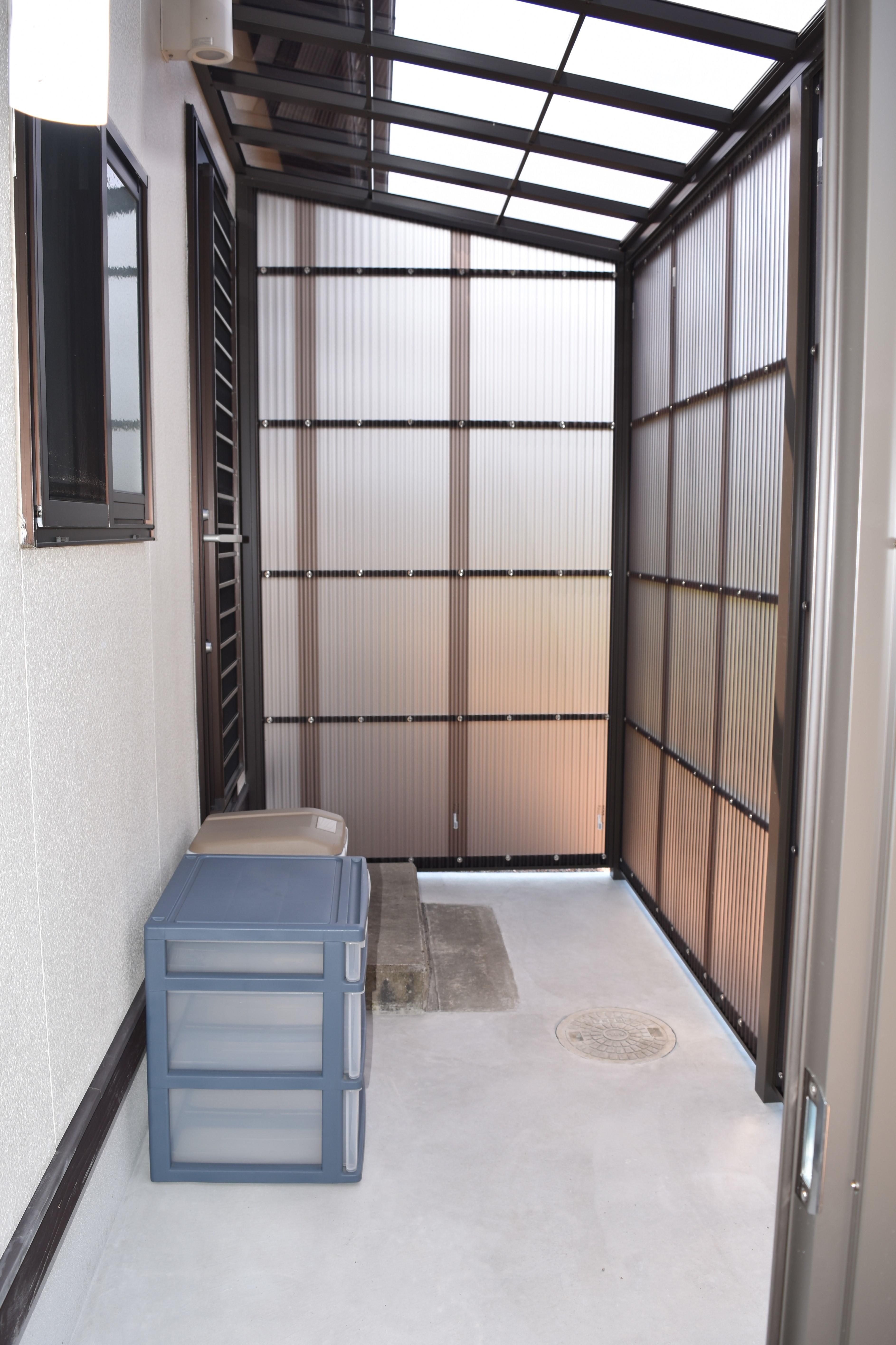 自然がお好きな奥様。「ガーデニングなどの資材・材料を勝手口の近くに置きたい。風がきついので風よけを設置したい」とご相談いただきました。屋根から光が差し込む明るい風除室に仕上がりました。勝手口まわりが守られたことで雨風を気にすることなく趣味を楽しんで頂けるようになったのではないかと思います。 お引渡し:2020年8月 施工費:45万~60万円
