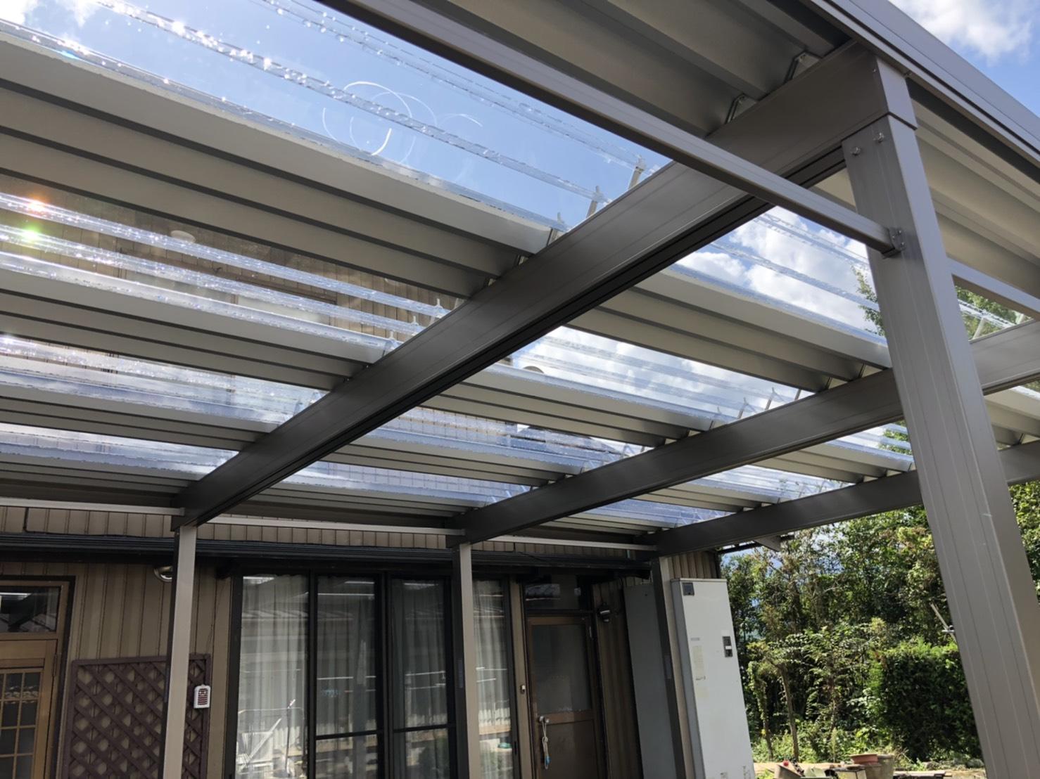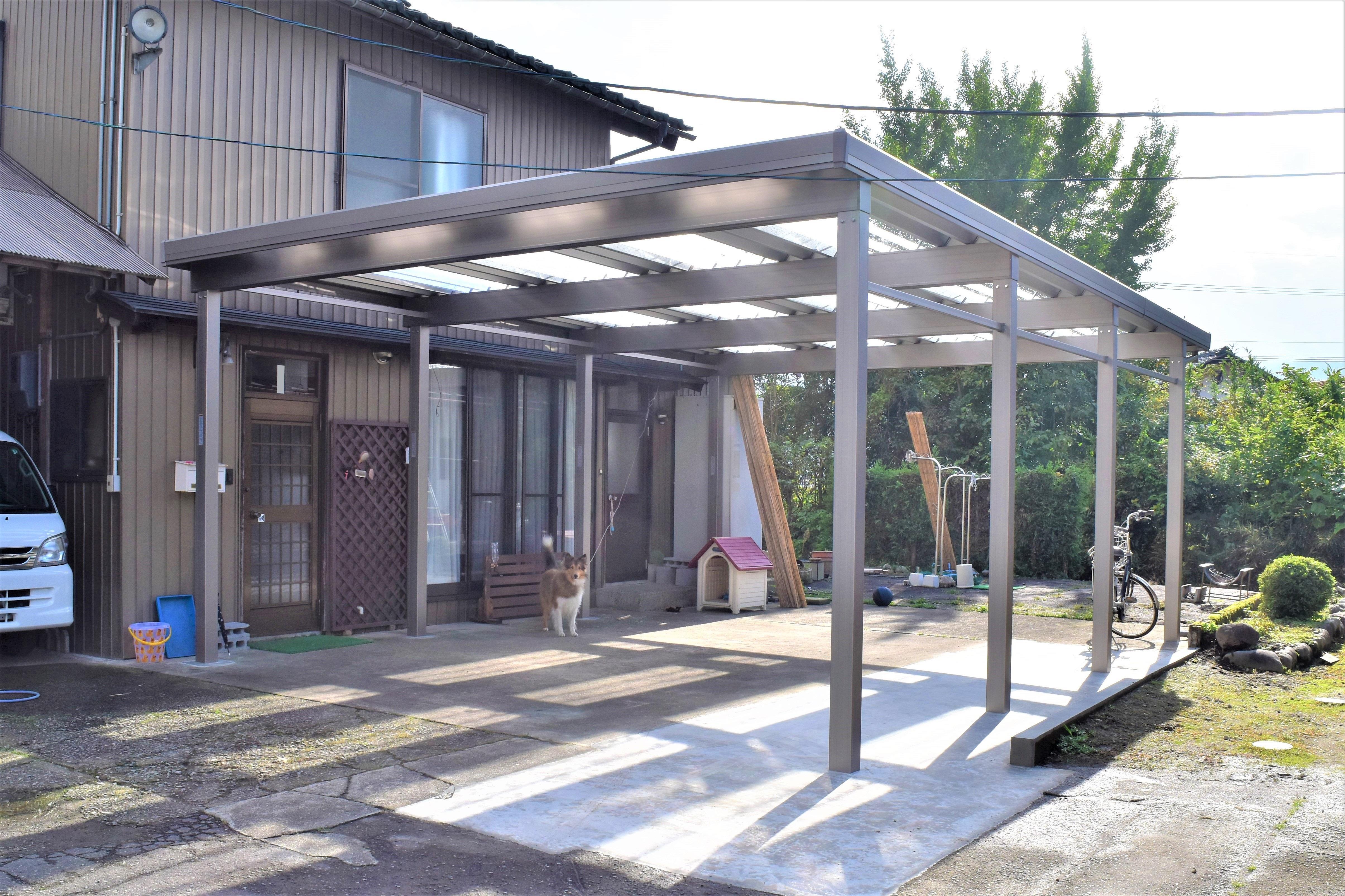 今までは単管で組んだ囲い屋根でしたが、雪のことも考えて綺麗に整備したいとご相談いただきました。北面に面して外からの光が採れなくなるため、少しでも明るくなるようにポリカ折板を採用しました。また、既存の建物との取り合い部分に雨垂れがないように留意しました。冬は除雪車が潜り抜けられるようにロング柱にして、高さのあるカーポートに仕上がりました。コンクリート工事もさせて頂きました。 施工費:110万~140万円 お引渡し:2020年10月