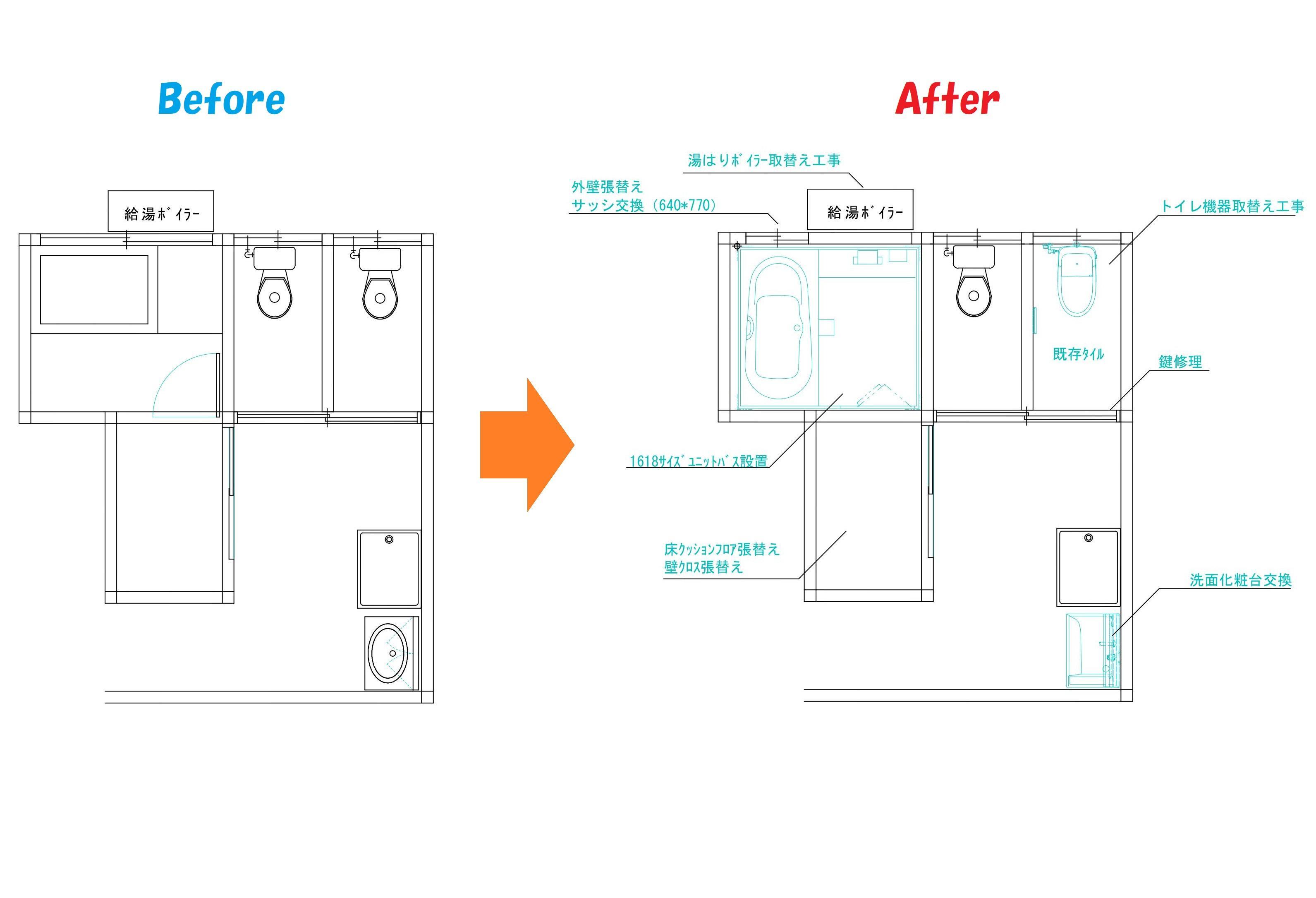 | リフォーム部位 | 和室、浴室、洗面化粧台、トイレ、給湯機器 |