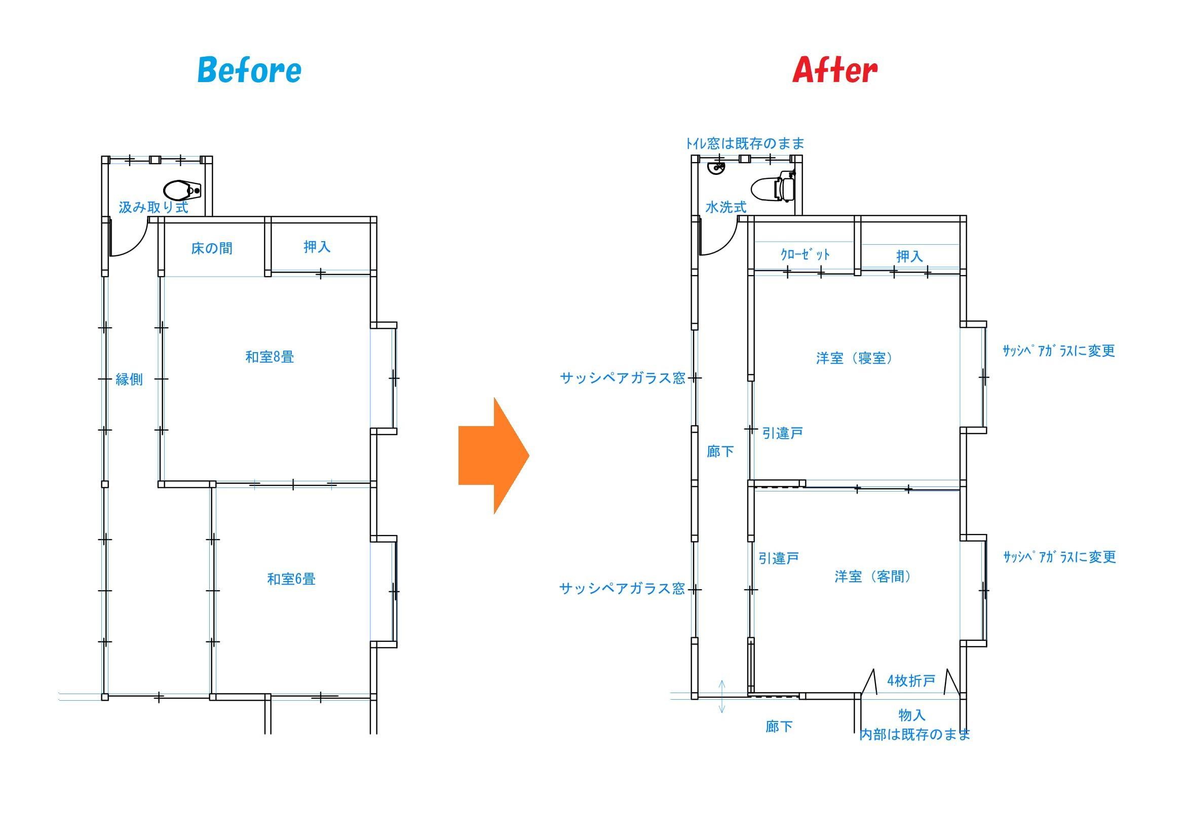 | リフォーム部位 | 和室、廊下、トイレ |