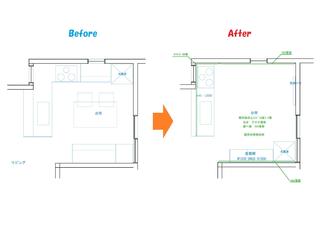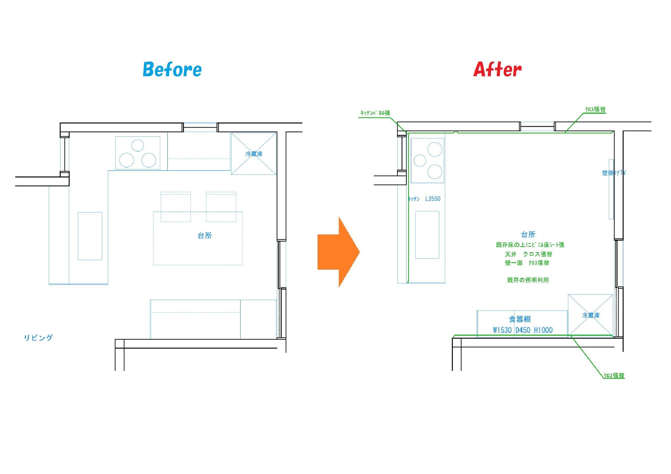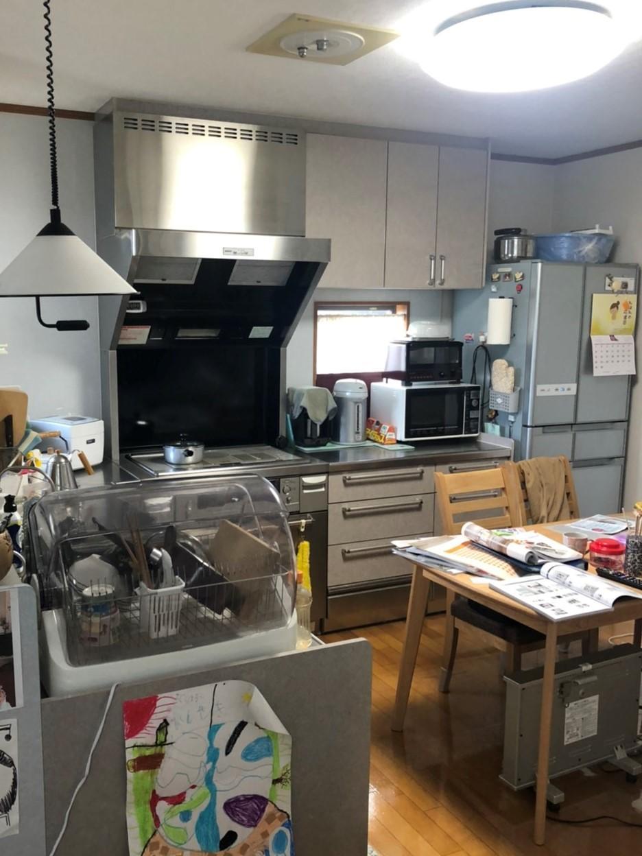キッチンの汚れがどうしても取れず、とても気にしていらっしゃいました。また、使い勝手が悪く狭いことから、キッチンを取り替えることになりました。お客様と確認しながら「夫婦二人分の収納」と「食事時のコミュニケーション」をキーワードとして3案ほど提案しました。ダイニングの天井・壁クロスも張替えをしてすっきりとした空間になりました。 施工費:170万~200万円 お引渡し:2020年12月