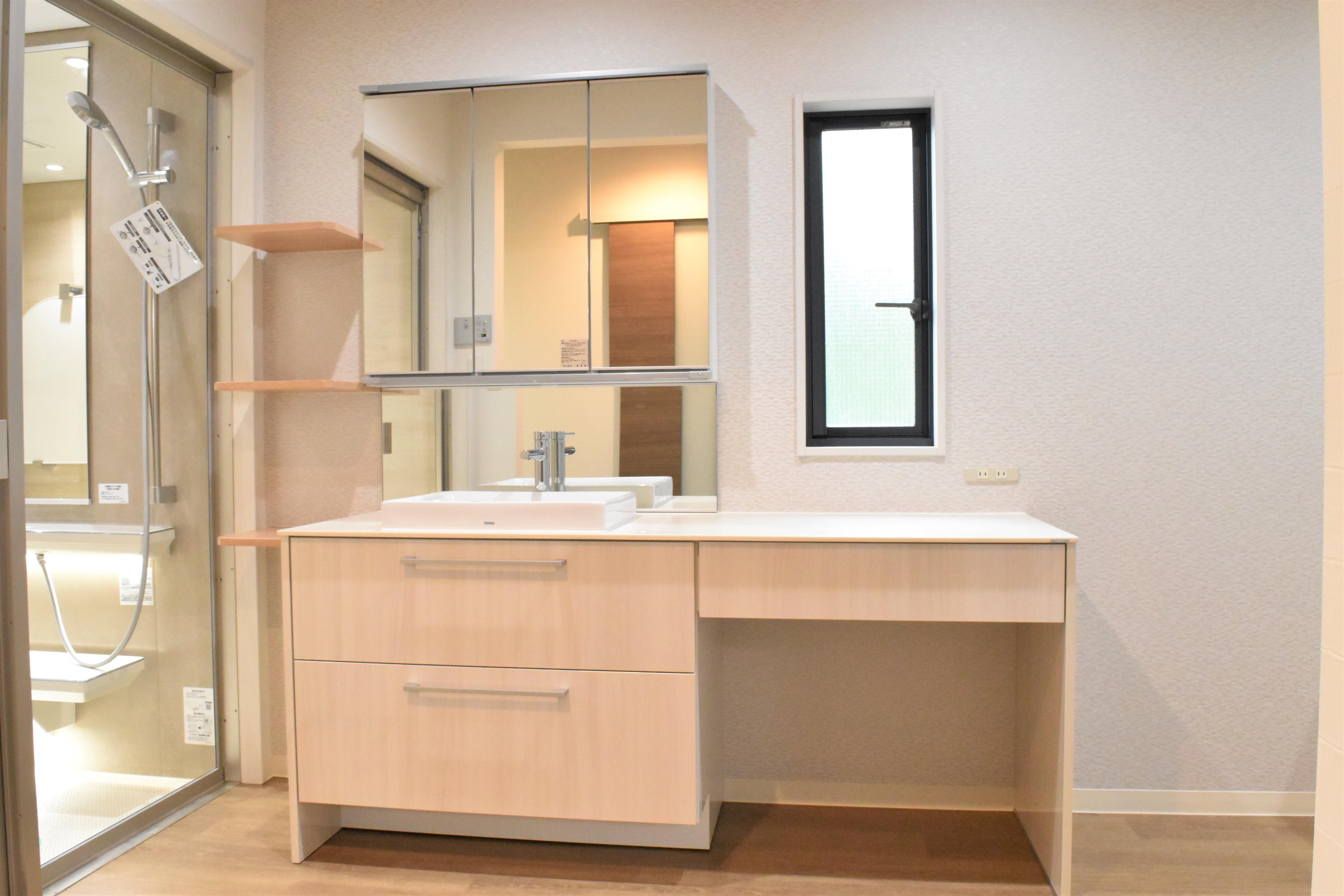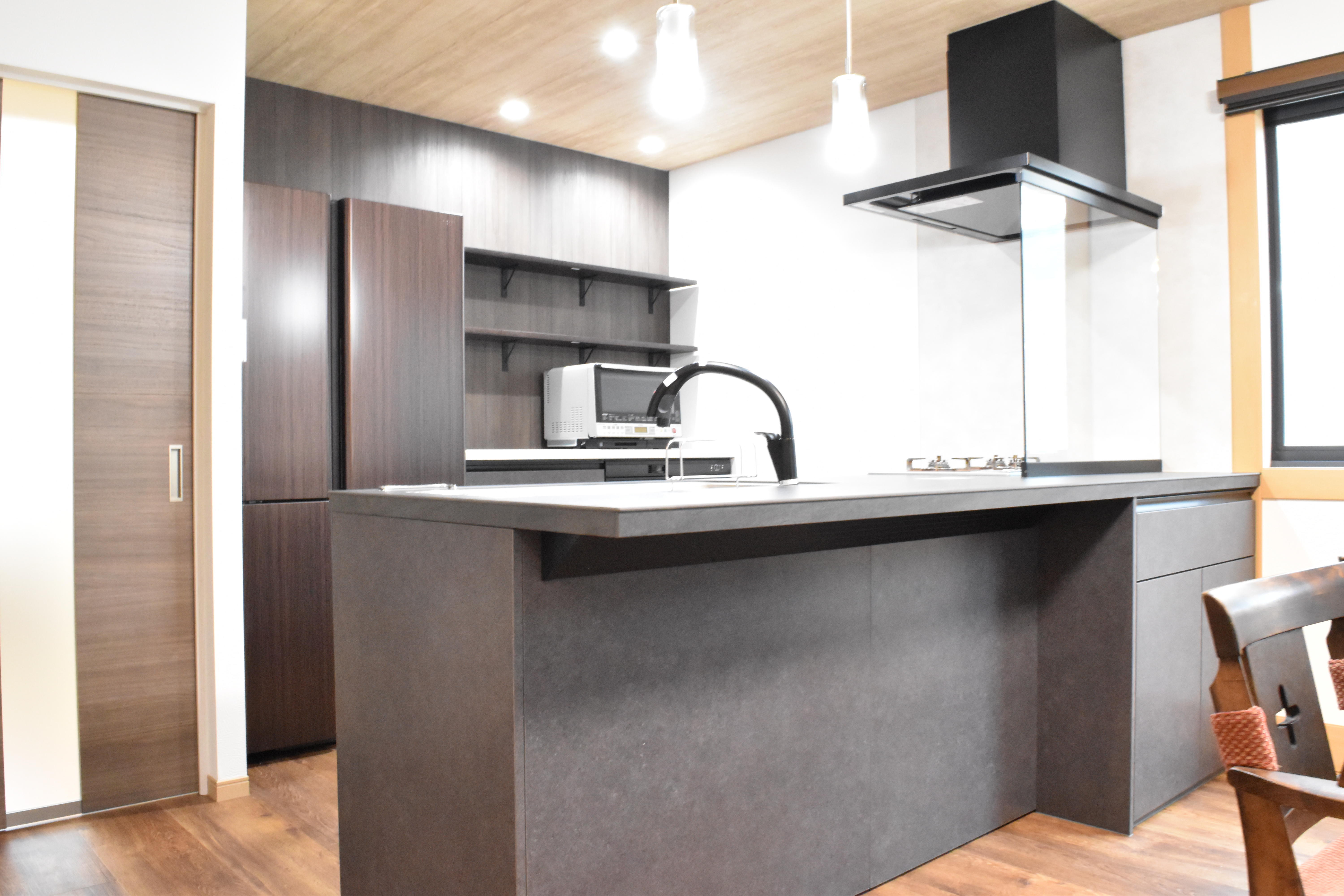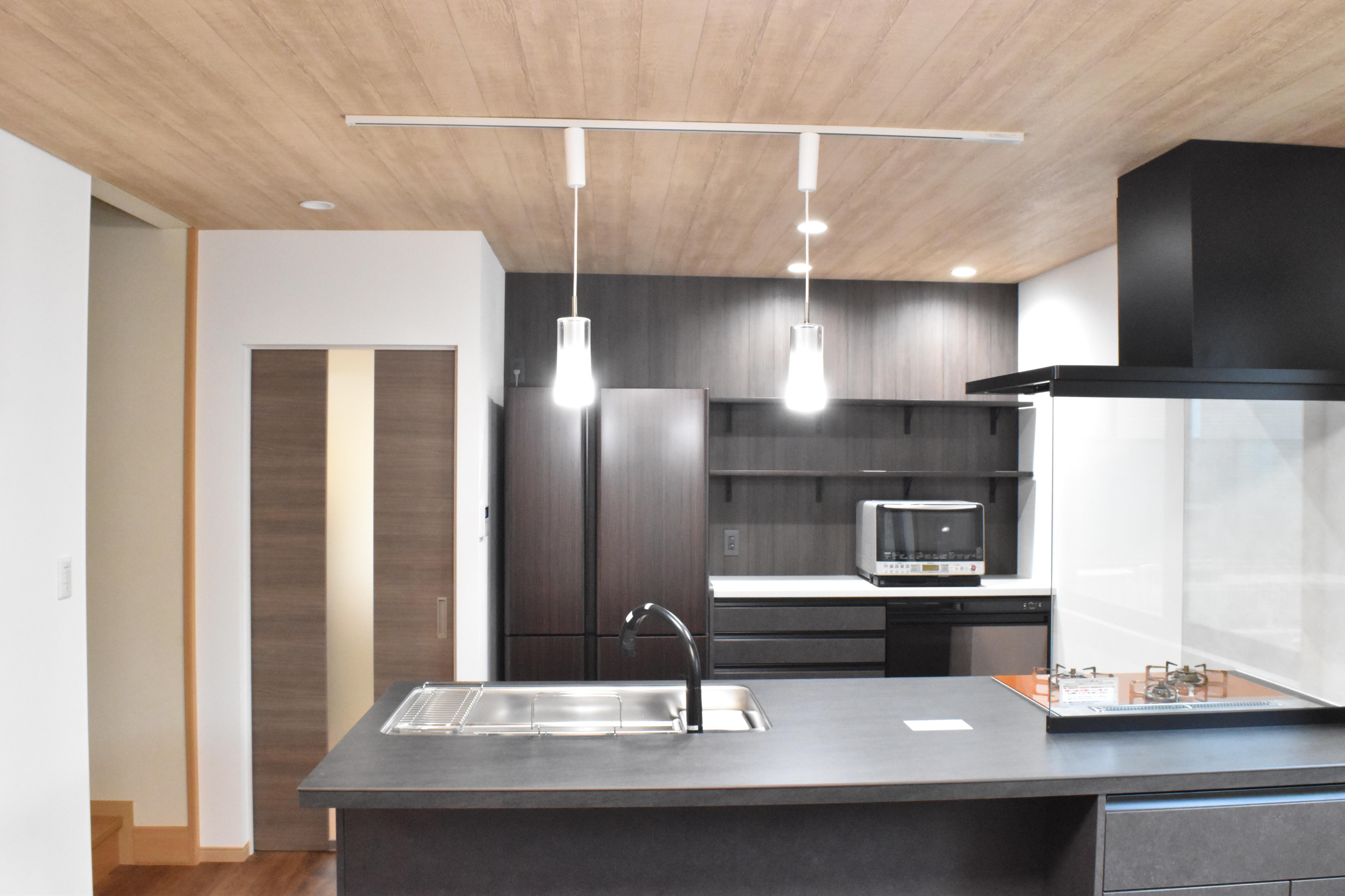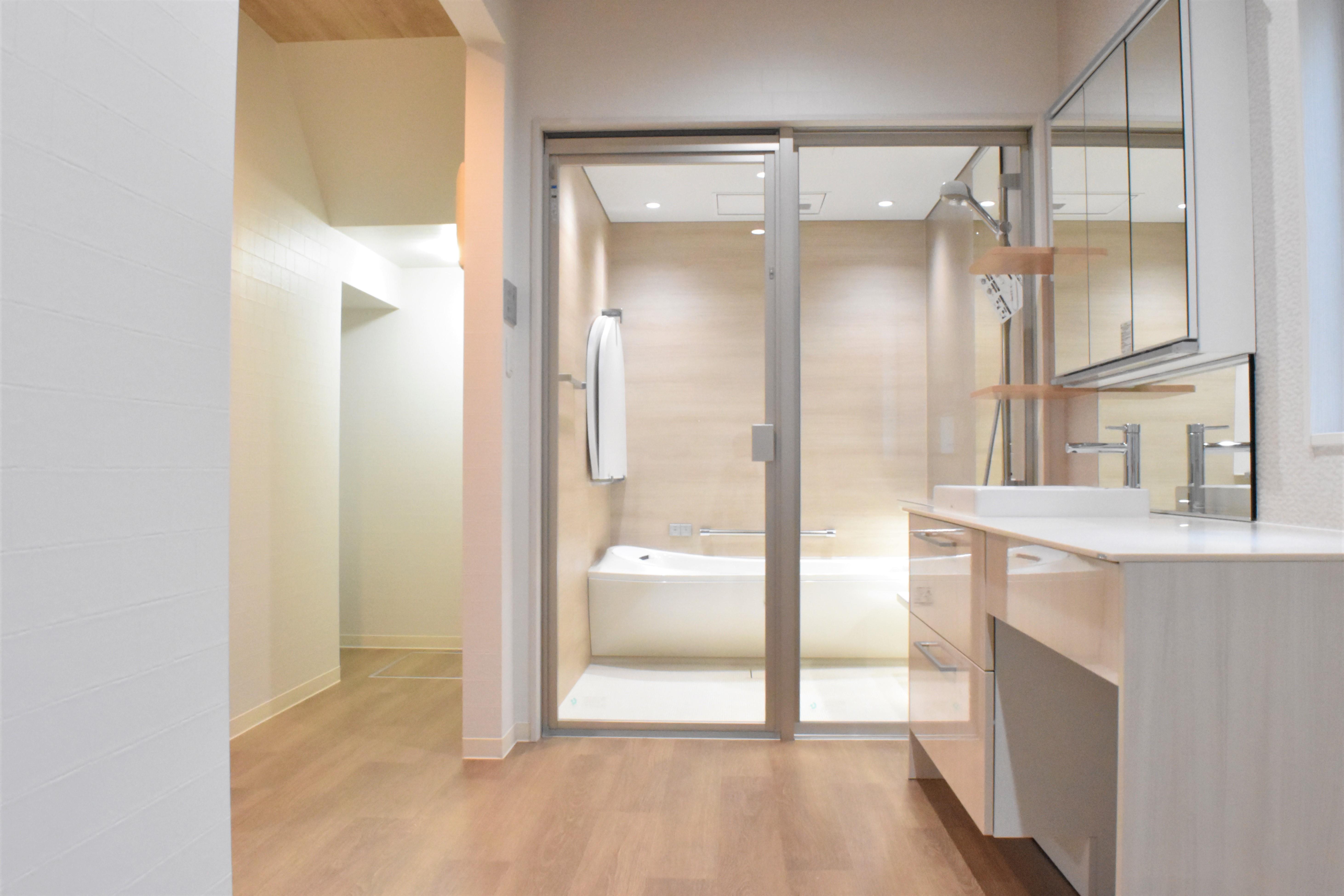 木目調の柔らかい雰囲気がお好きなお施主様で、LDK・洗面脱衣場の天井クロスや浴室の壁も木目柄にしました。家の中の動線を一緒に考え、生活しやすい間取りに変更しました。また、キッチン・ユニットバス・洗面化粧台、どれもハイグレードの機器を選定して、高級感漂うこだわりの空間になりました。 施工費:670万~750万円 お引渡し:2021年5月