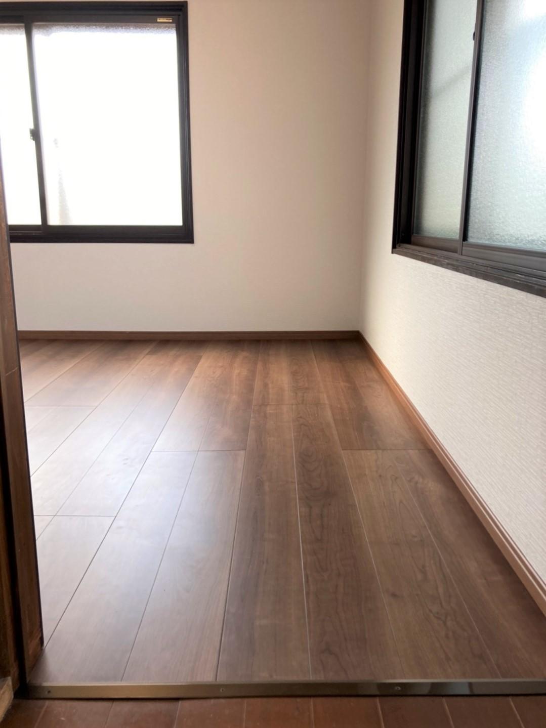 使っていなかった4畳半の和室を住みやすくするために、①2重窓設置で断熱性強化 ②内装を変えて明るい空間づくりをしました。畳だった床をフローリングにし、扉を新しくして、廊下との段差を解消しました。 施工費:40万~50万円 お引渡し:2021年5月