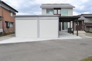 ガレージ設置にあたり、母屋の屋根からの落雪が不安だったため適度な距離をとりました。ガレージとカーポートの並びや、家の前の道路が坂になっているので乗り入れ口の高さの相談など、お客様と業者との打合せをしっかりと行い、納得いただける仕上がりになりました。 施工費(税込):270~320万円