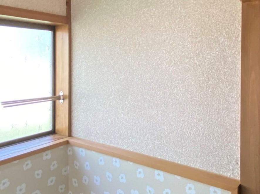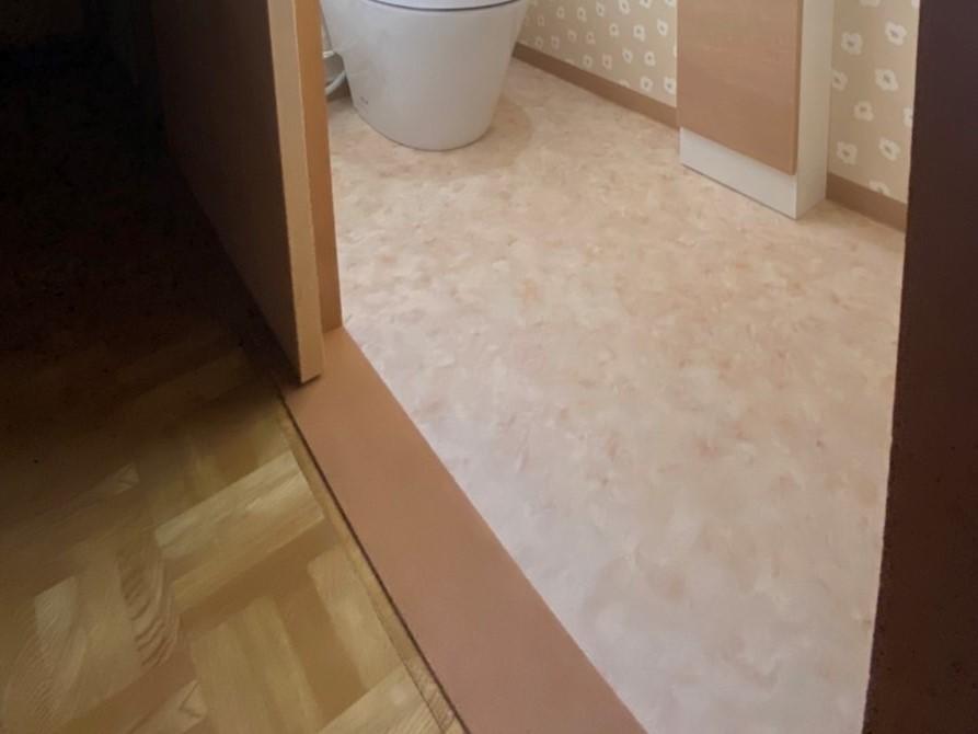 引戸の取替と出入口の段差解消も施工しました。北欧風な花柄クロスがかわいい、快適なトイレ空間になりました。 施工費(税込):75~80万円