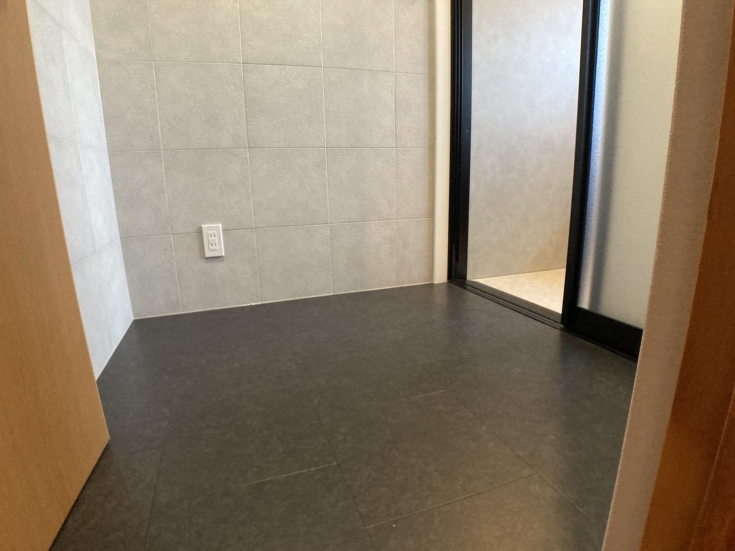 お客様のご要望で脱衣室にエコカラット(湿気を取るタイル)を張らせていただきました。脱衣所の湿気を取ってくれるので、換気扇が必要ないくらい活躍しているそうです。おしゃれで機能的な仕上がりになってよかったです。ありがとうございました。