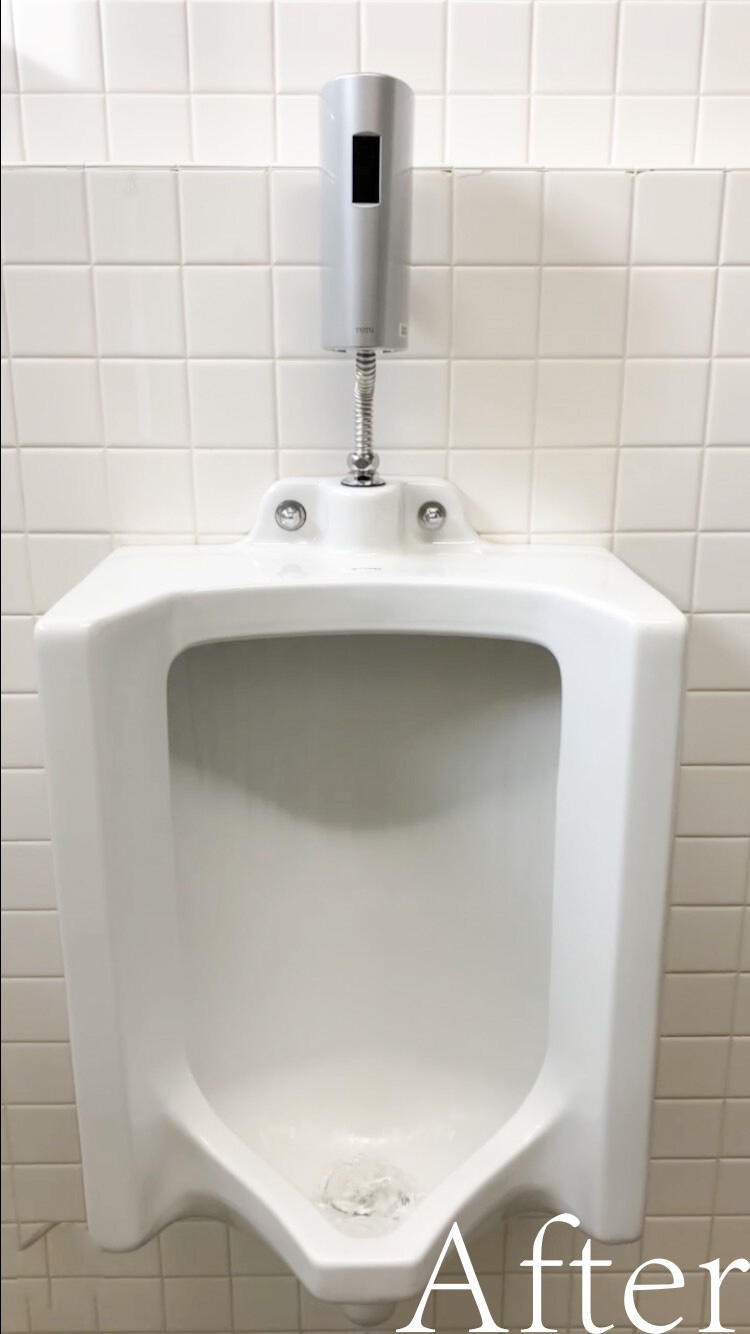 男子トイレの洗浄ボタンはよく故障したり漏水したりする箇所です。 消耗品のため、5~10年程度使用していて壊れた場合は取替することをおすすめします。