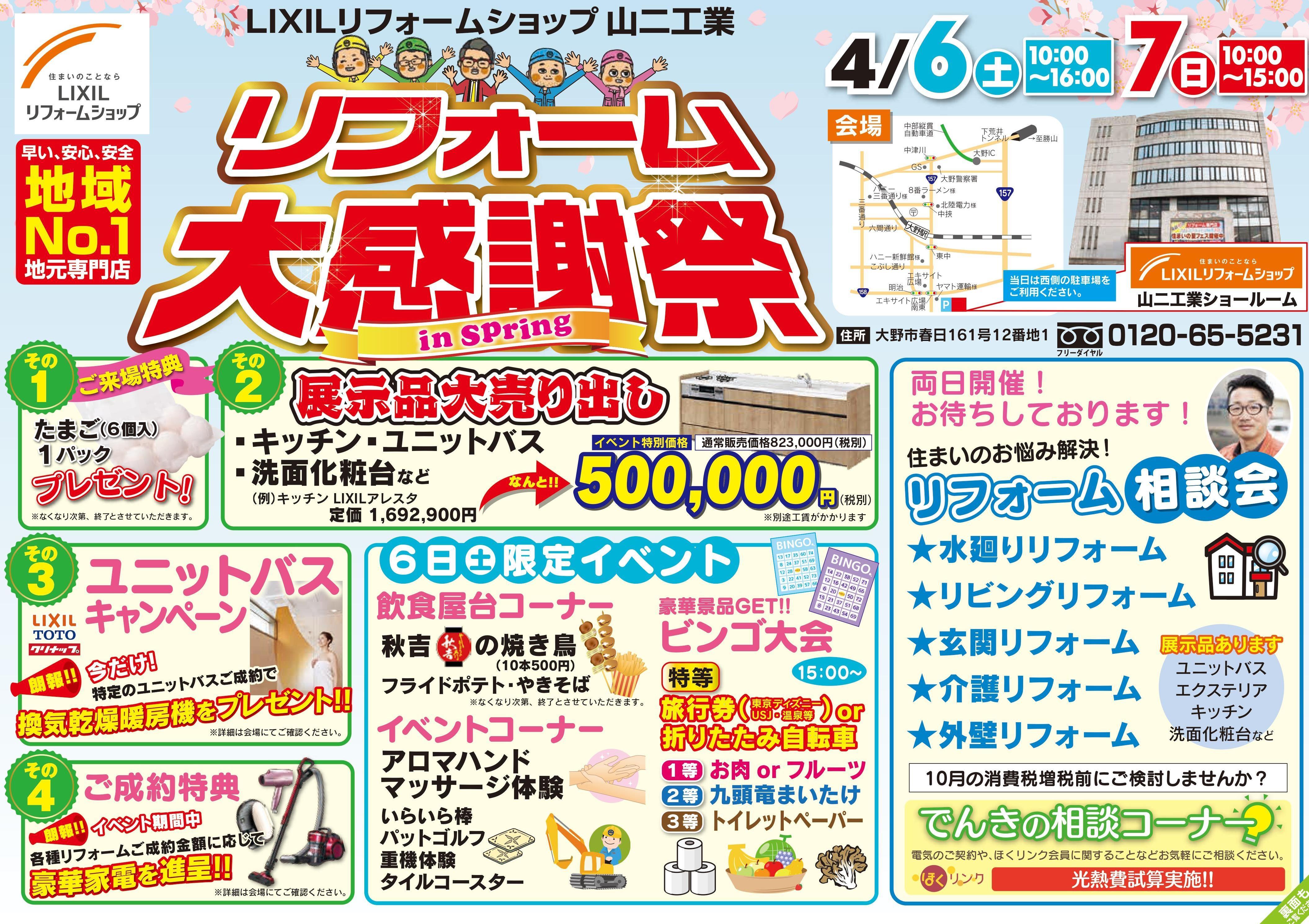 【4月6日(土)・7日(日)】 春のリフォーム大感謝祭を開催!!