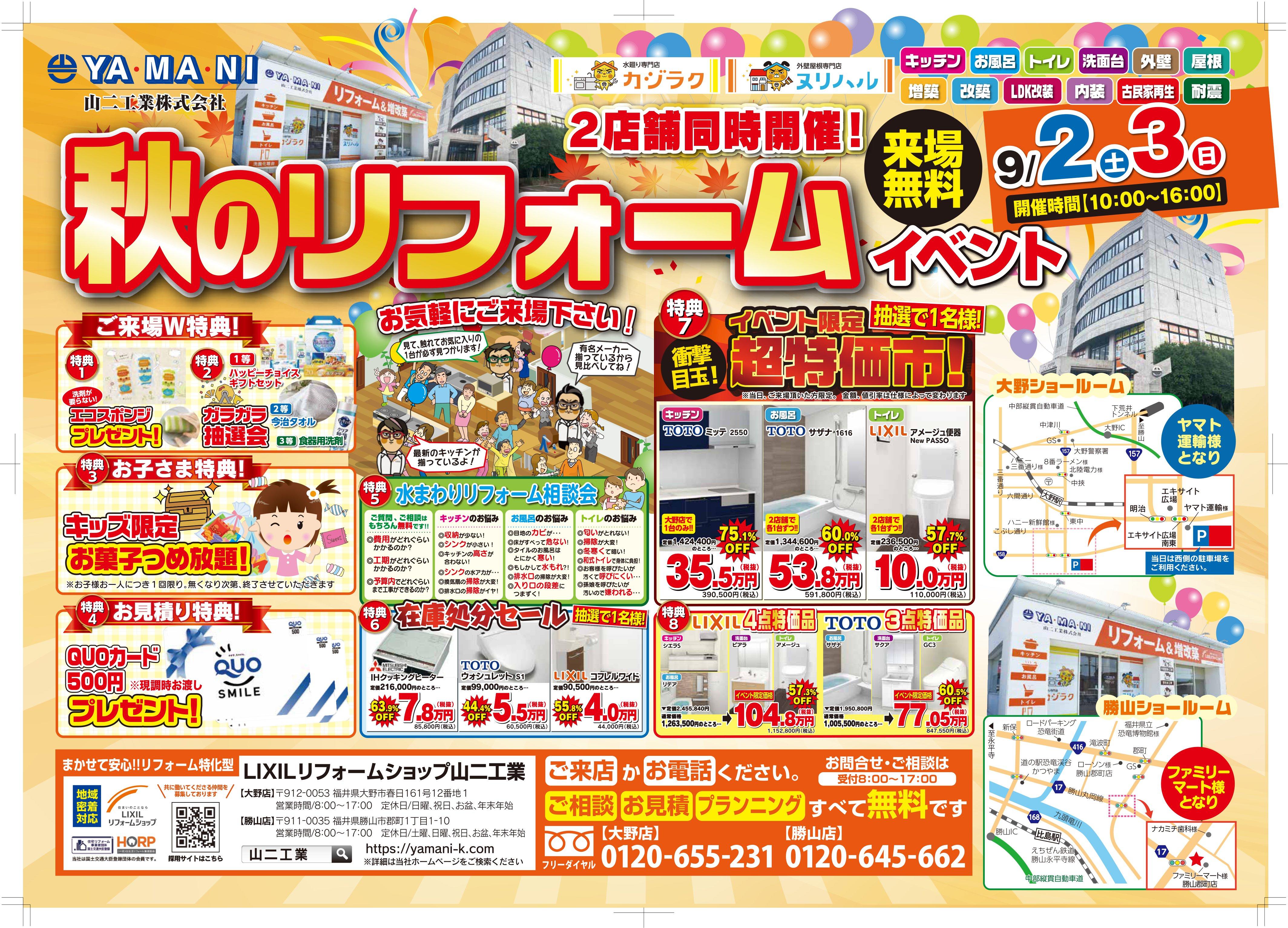 【9月2日(土)・3日(日)】秋のリフォームイベントを開催!