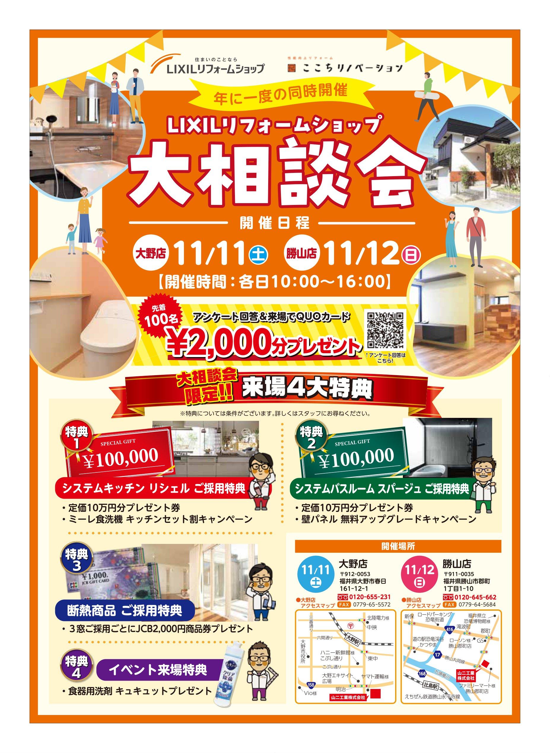 ※11/11(土)は山二工業 大野店にて、11/12(日)は山二工業 勝山店にて開催予定です。