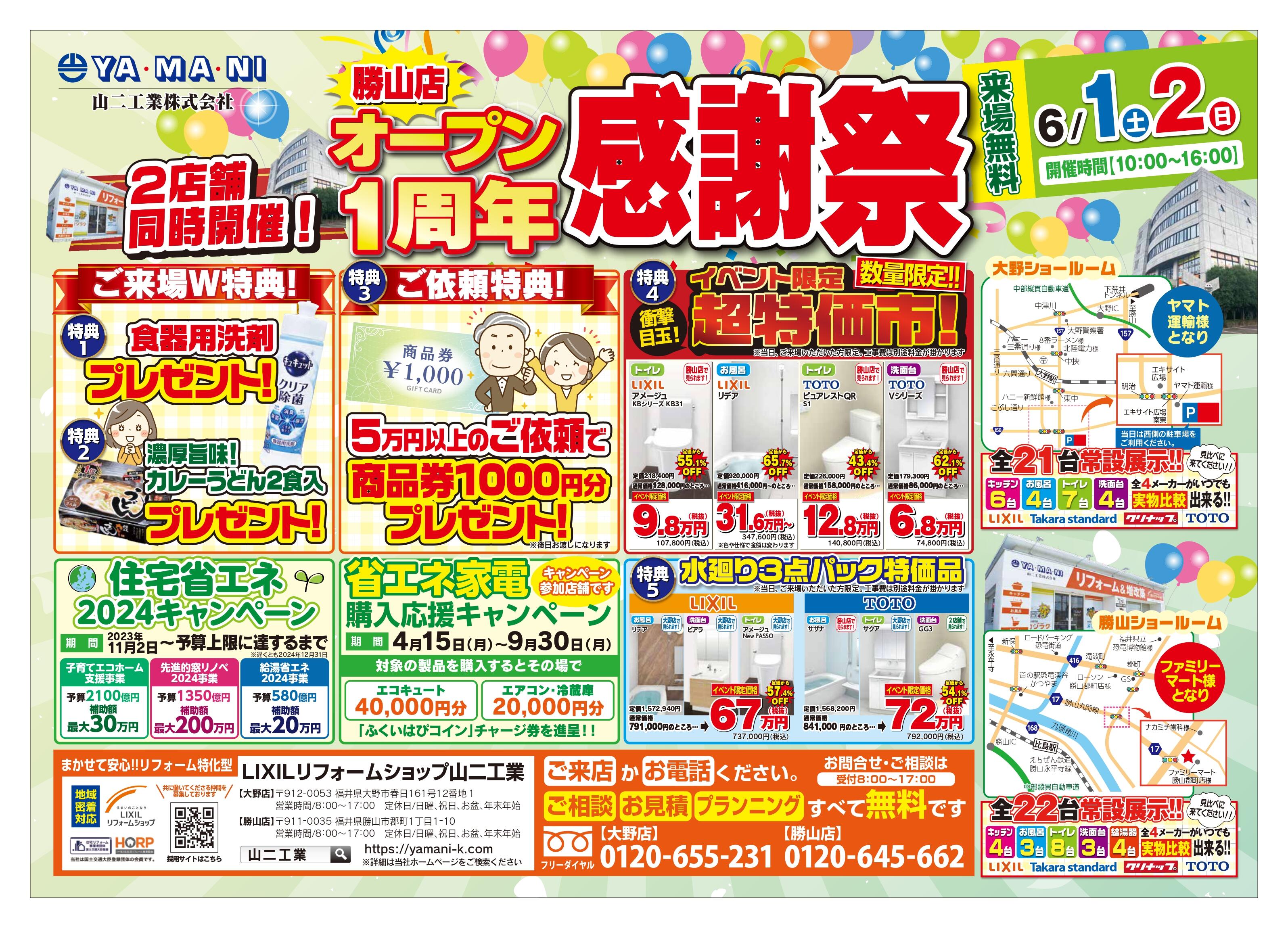 【 6月1日(土)・2日(日) 】2店舗同時開催!! 勝山店オープン1周年感謝祭 を開催します!