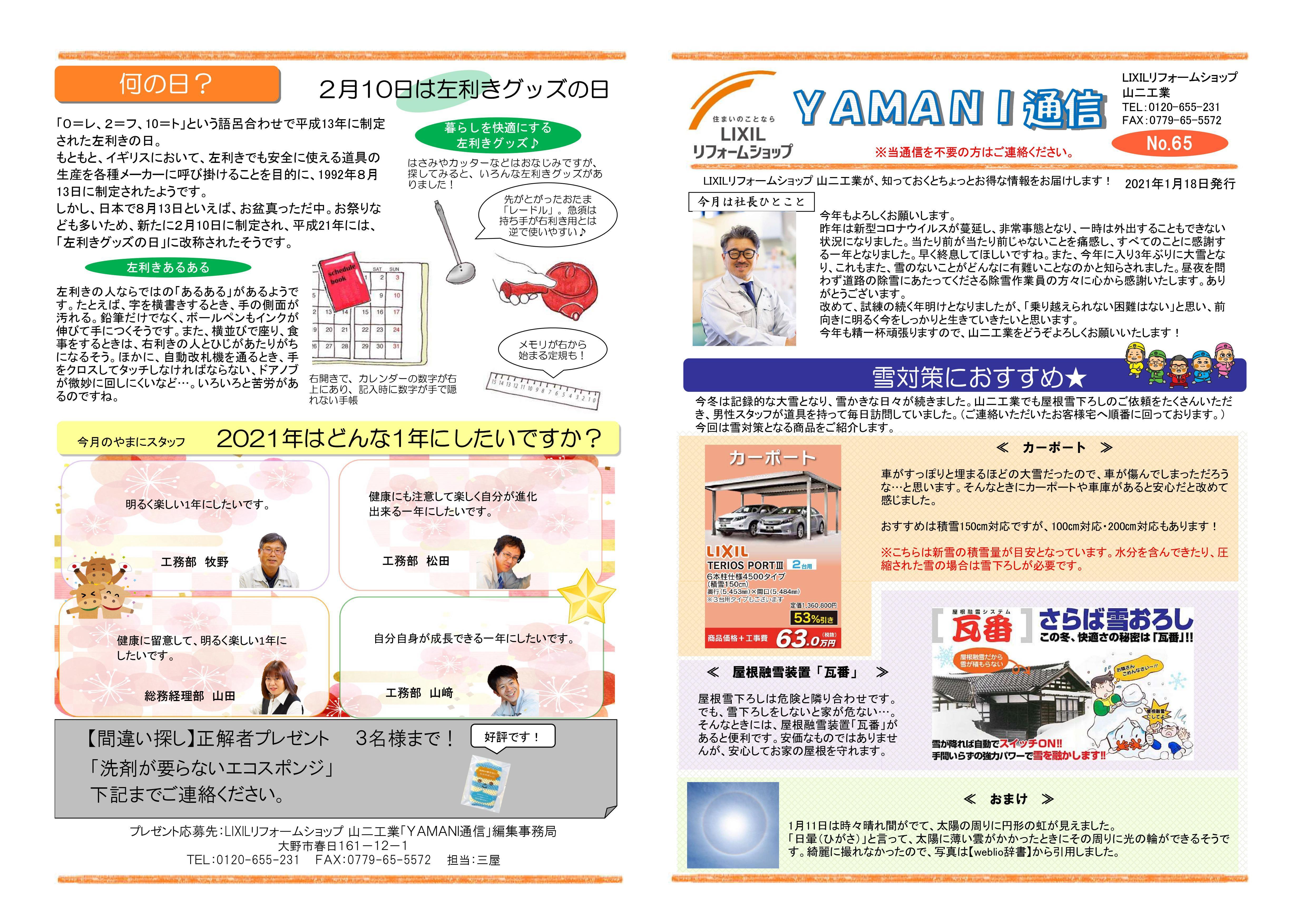 YAMANI通信1月号(2021年)
