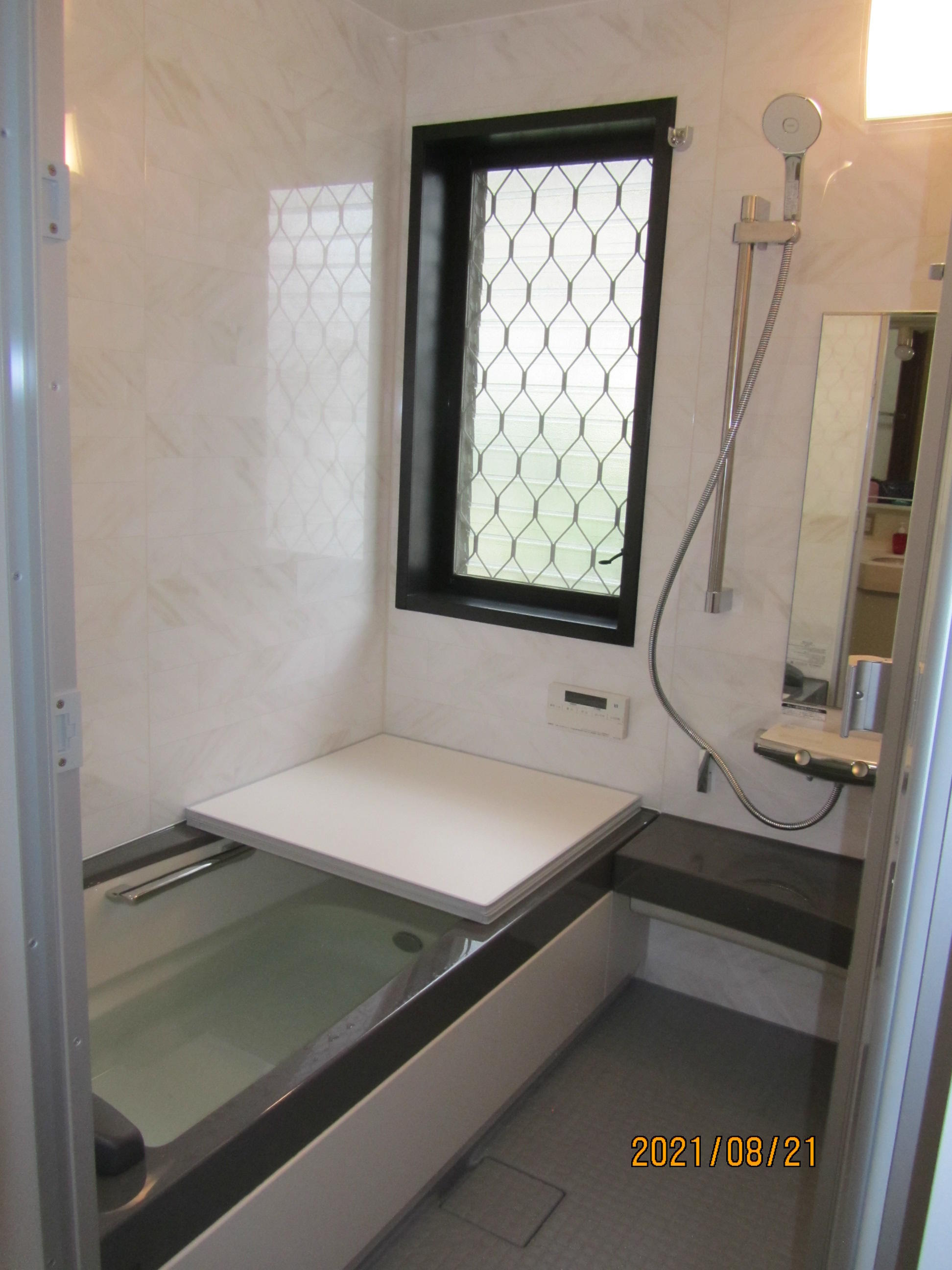 給湯機が故障されたのを機に浴室リフォームを御相談頂きました。 御主人様がアクアフィールを気に入られ、スパージュシリーズに決定しました。 仕上がりは高級感があり、ゆったりとしたバスタイムになりそうです。